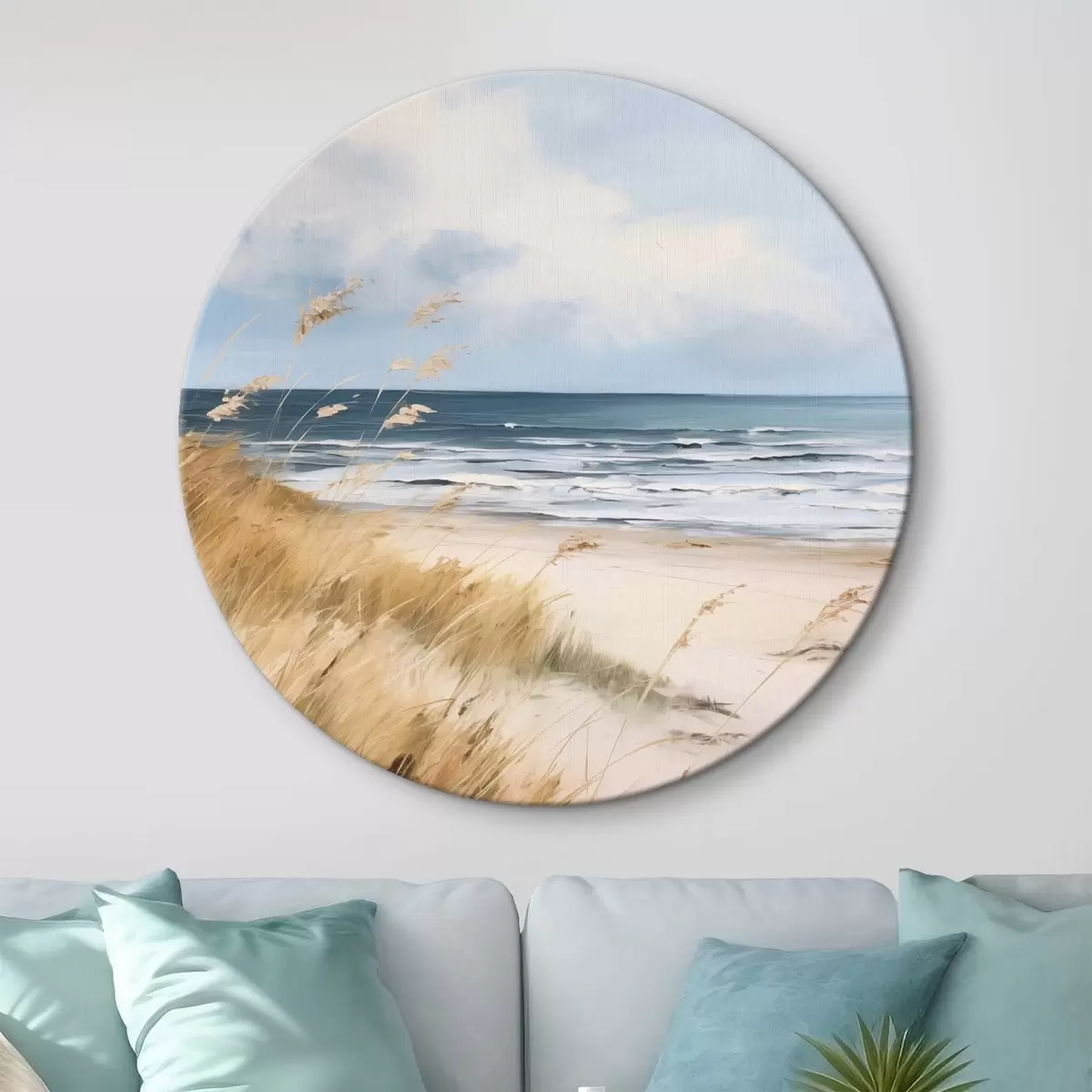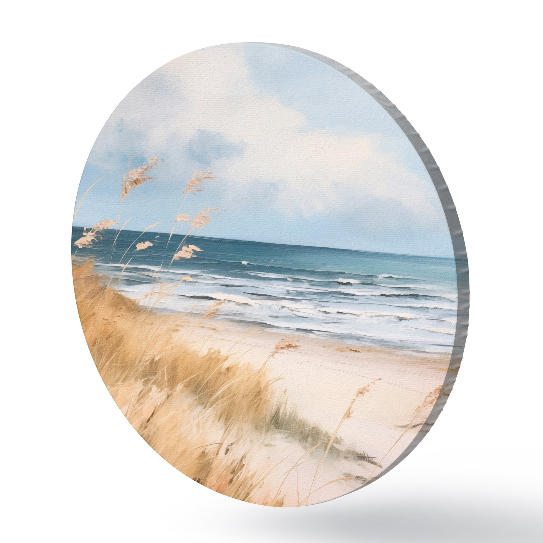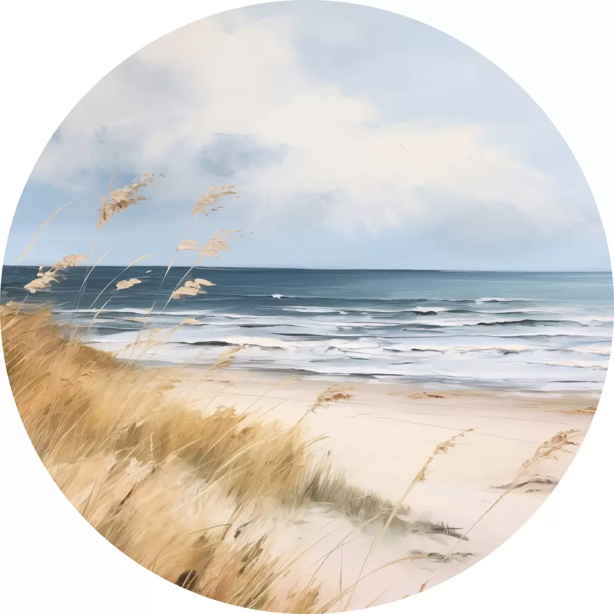 Pilt Liivane rand, esiplaanil kõrge rohi, taustal ookean koos lainetega ja pilvine taevas Nr r45174