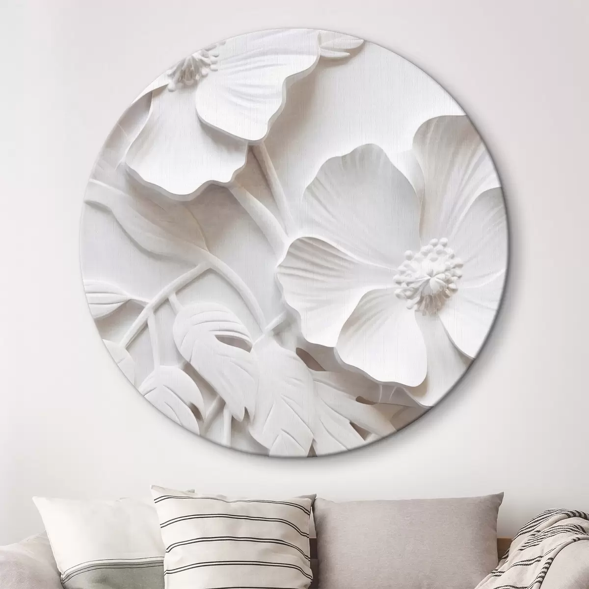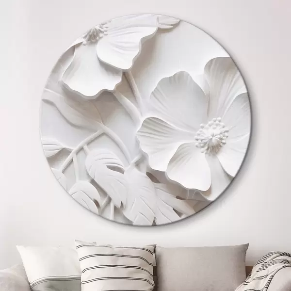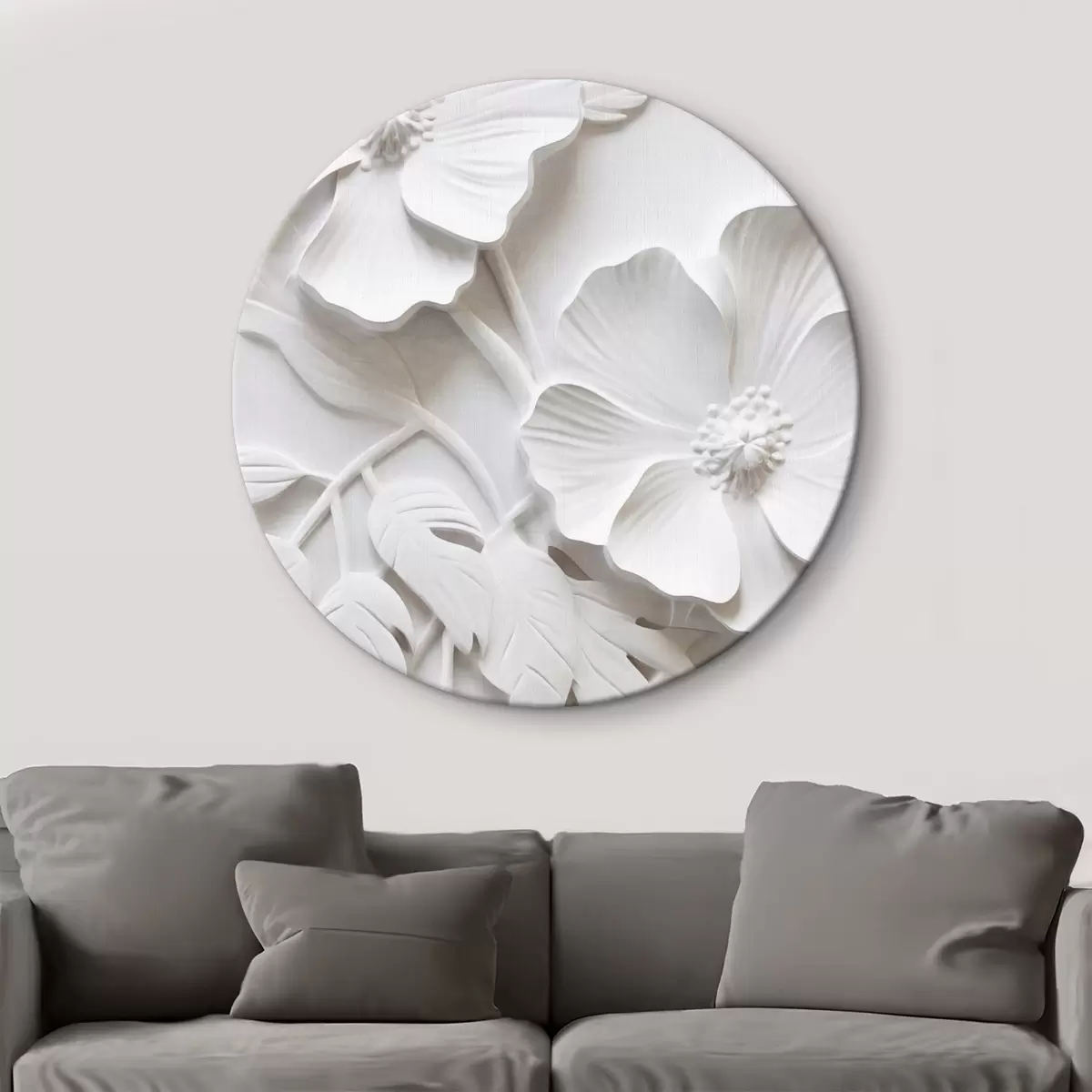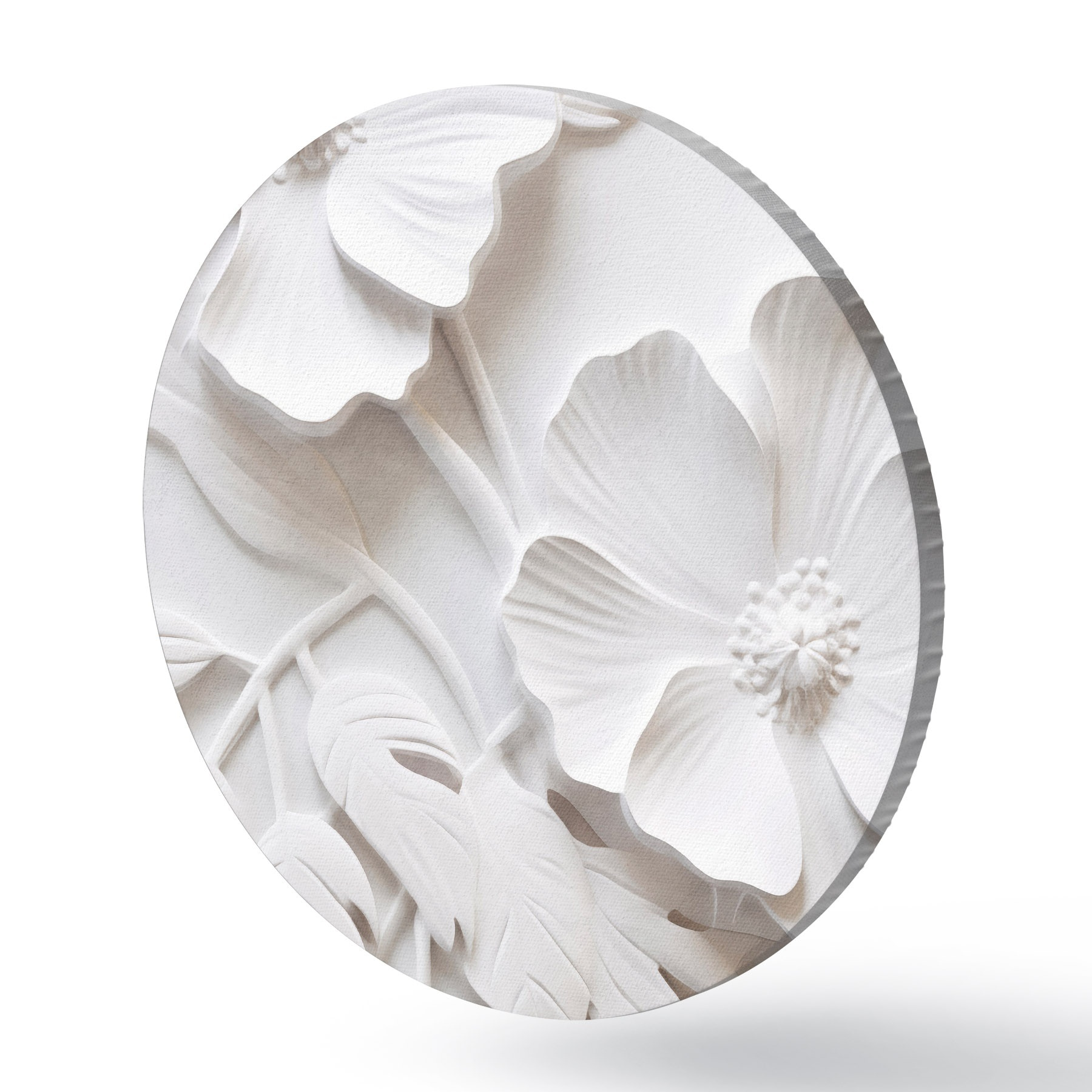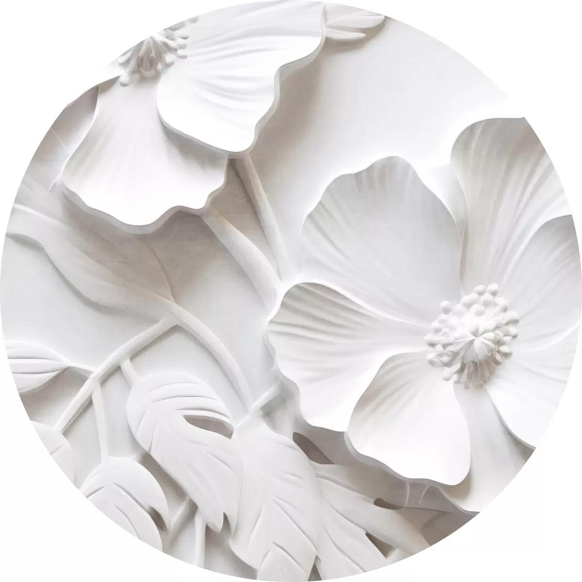 Pilt Dekoratiivsed minimalistlikud valged lilled koos lehtedega, reljeefne imitatsioon, valge taustaga Nr r45179