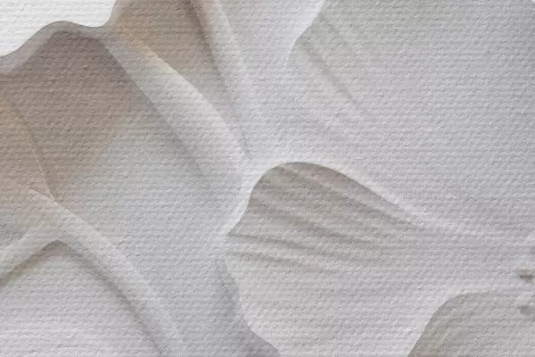 Pilt Dekoratiivsed minimalistlikud valged lilled koos lehtedega, reljeefne imitatsioon, valge taustaga Nr r45179