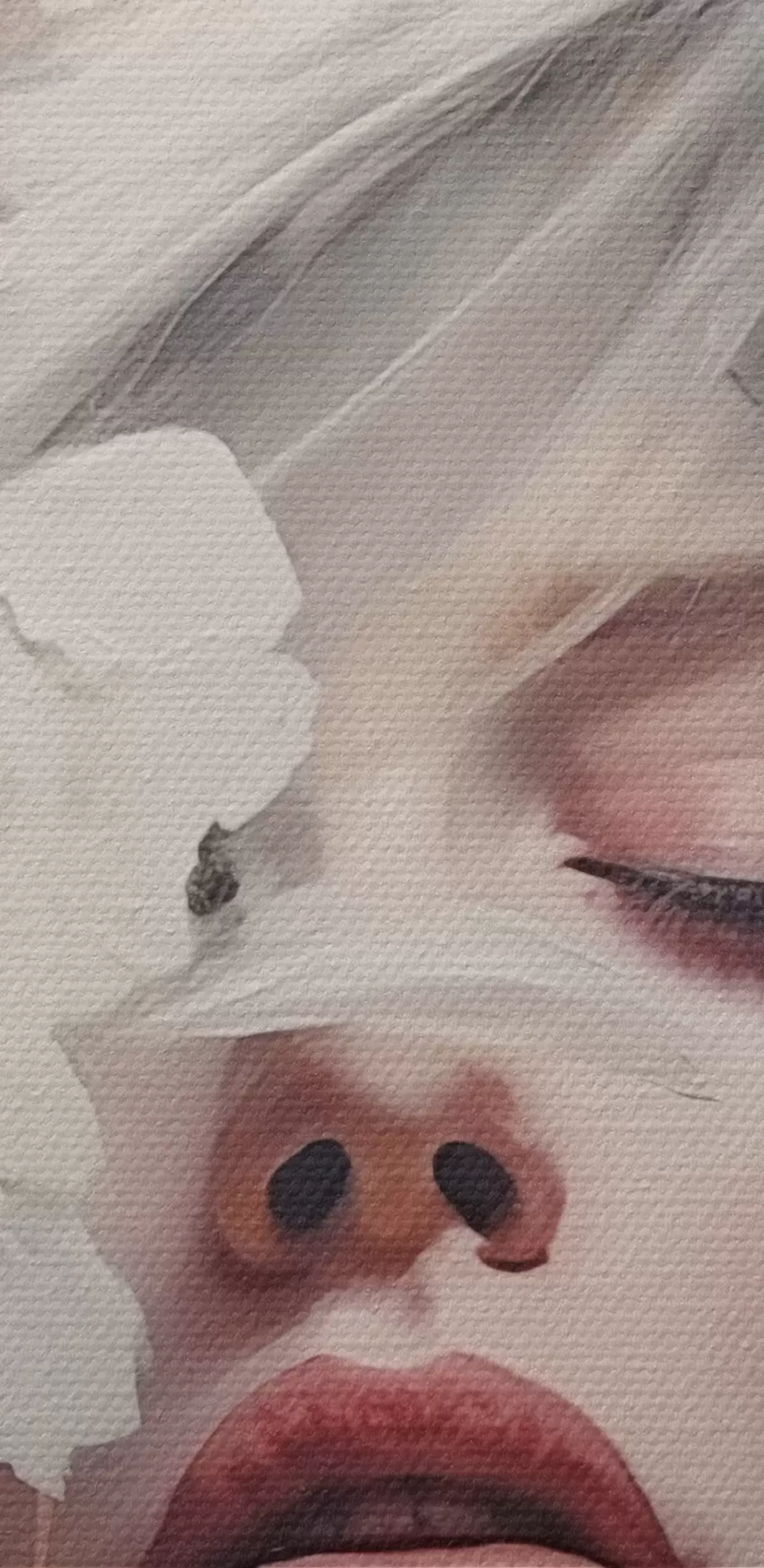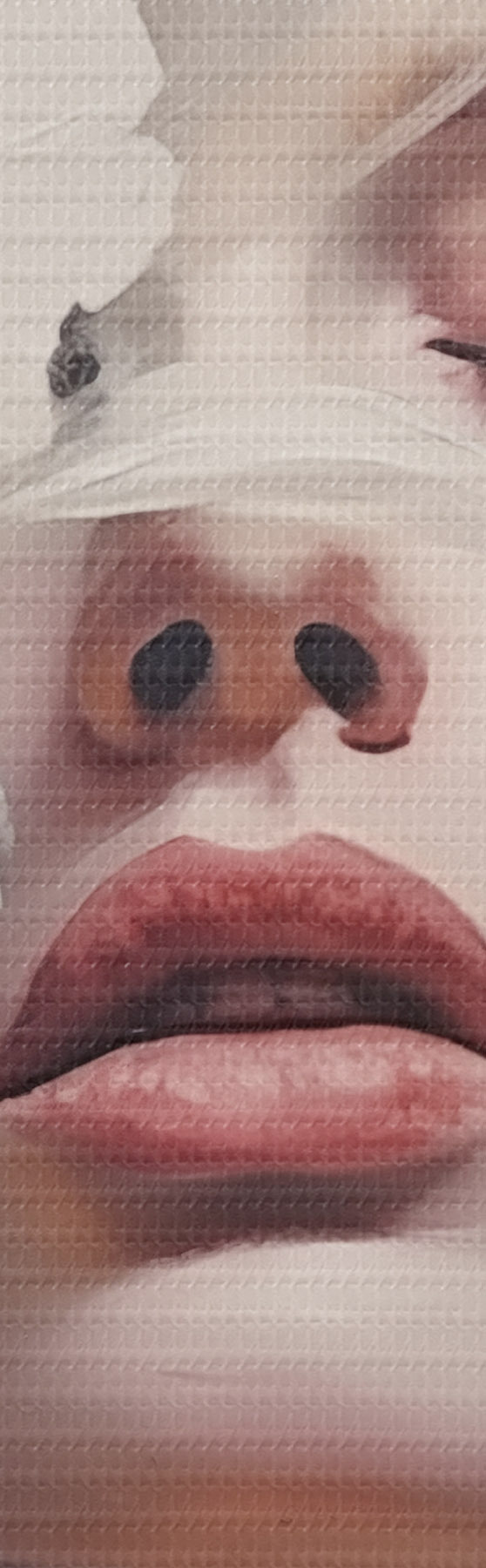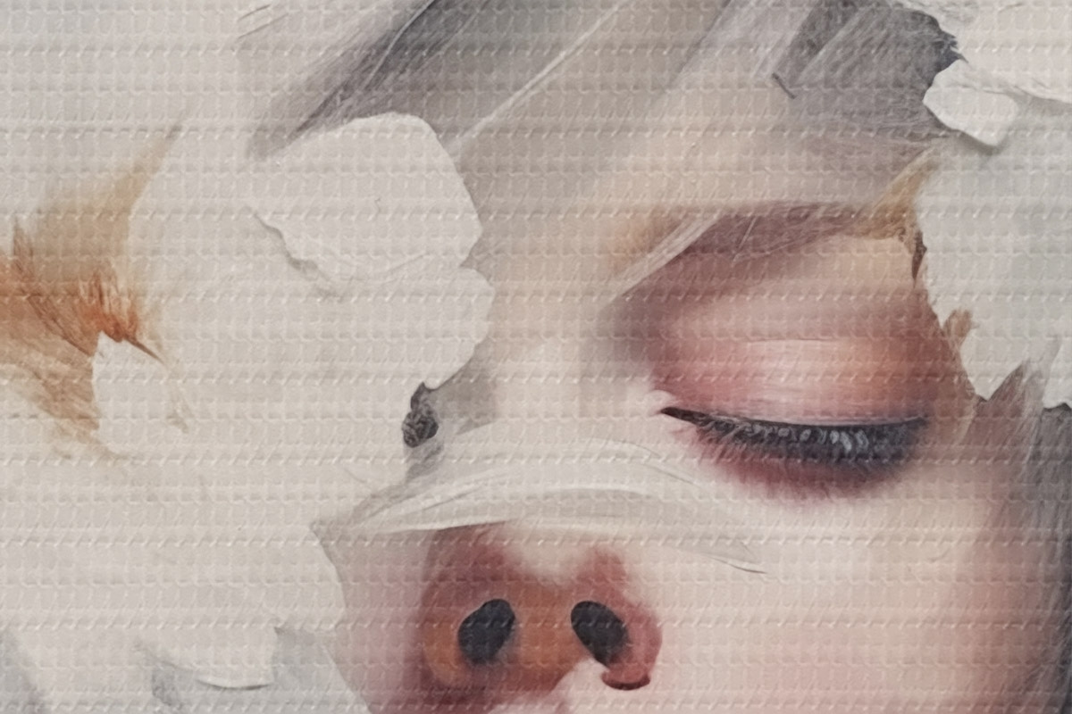 Selle lõuendi peenike niidipunus meenutab professionaalse kunstniku lõuendi pinda.