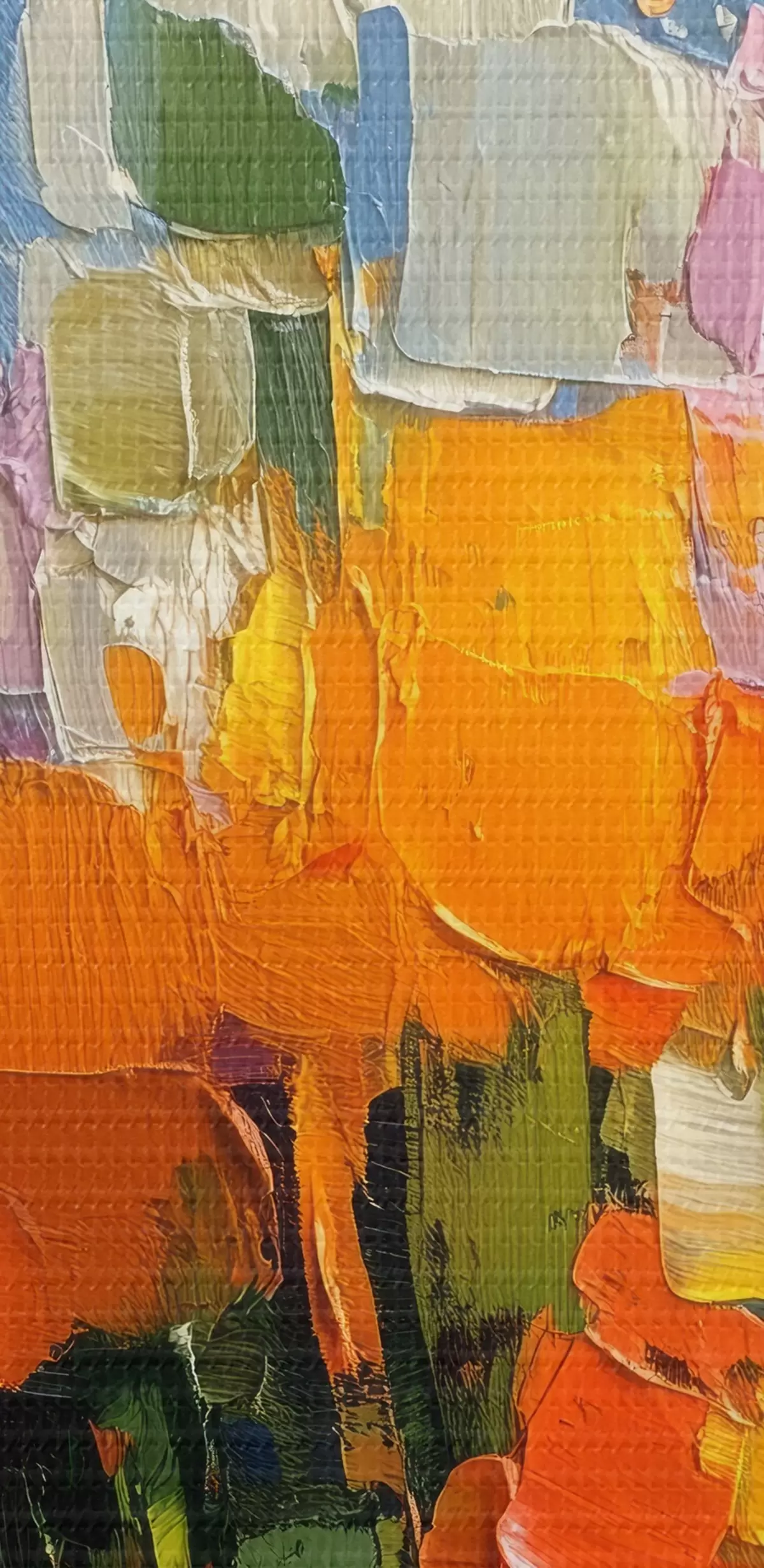Maali võib riputada kohe pärast selle kättesaamist. Maal on pingutatud 2 cm laiusele puidust kandikule.