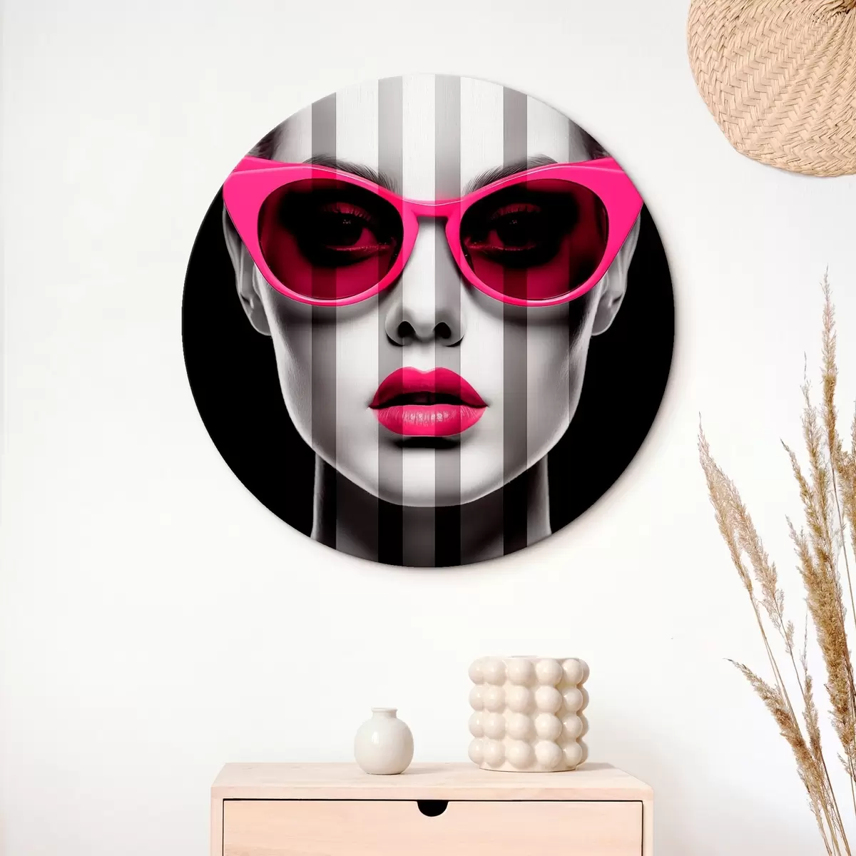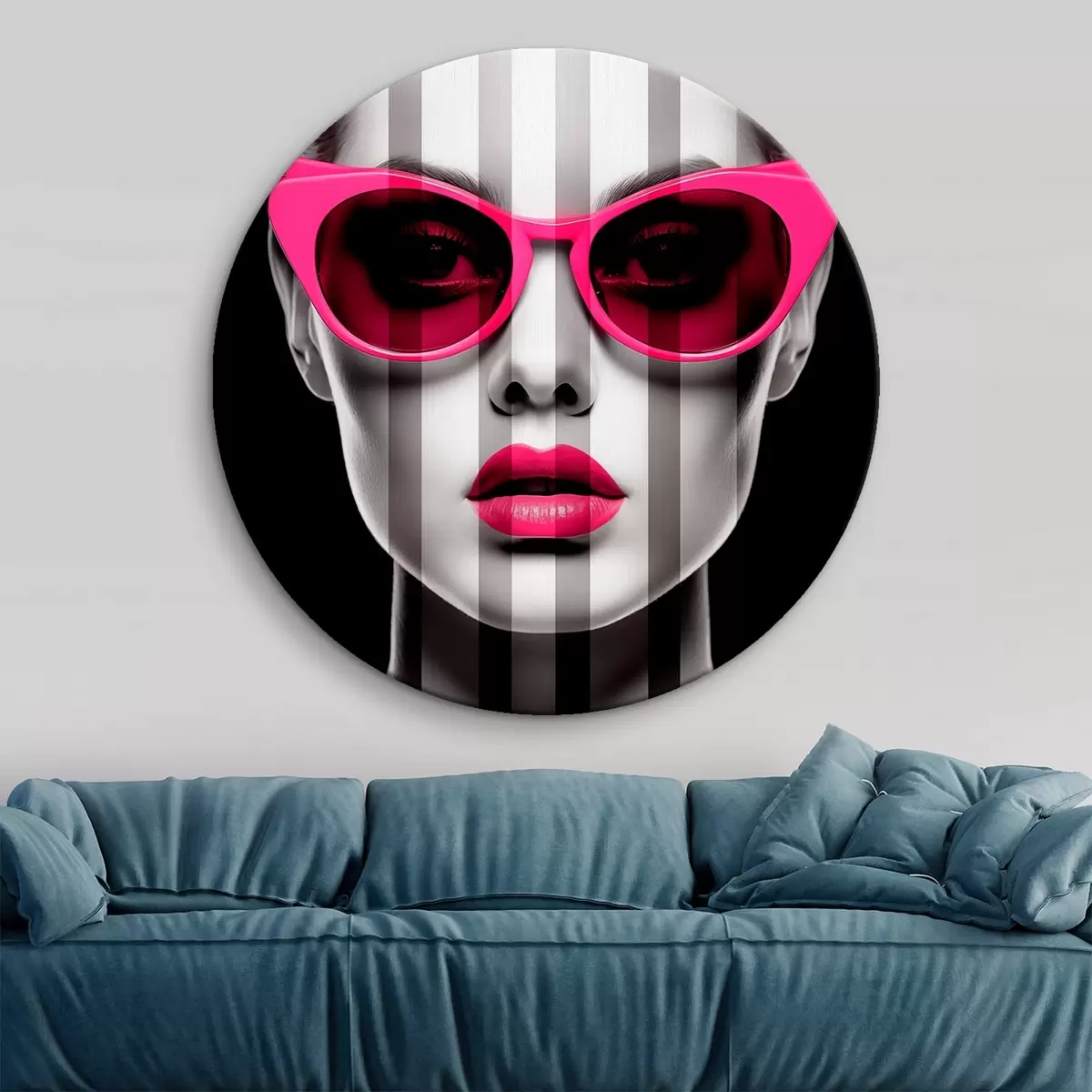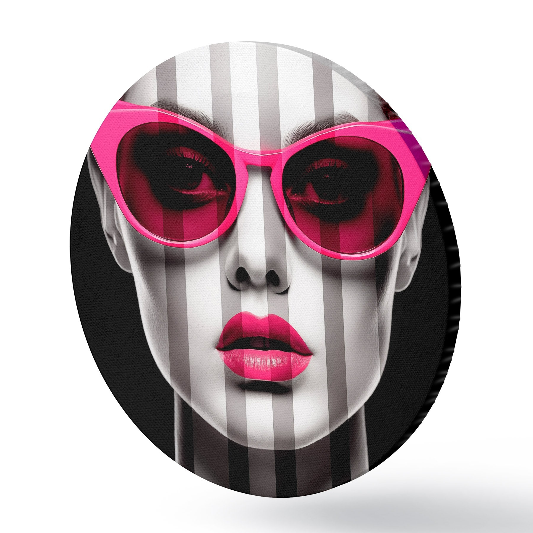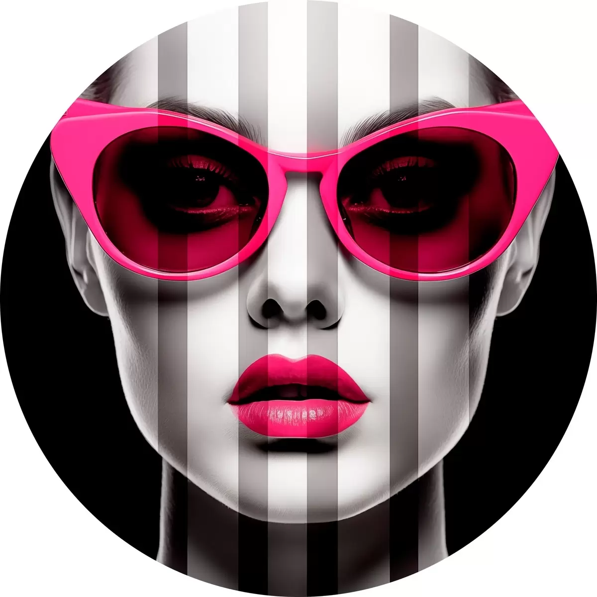 Pilt Naine kannab roosa prille, millel on mustad ja valged triibud Nr r45315