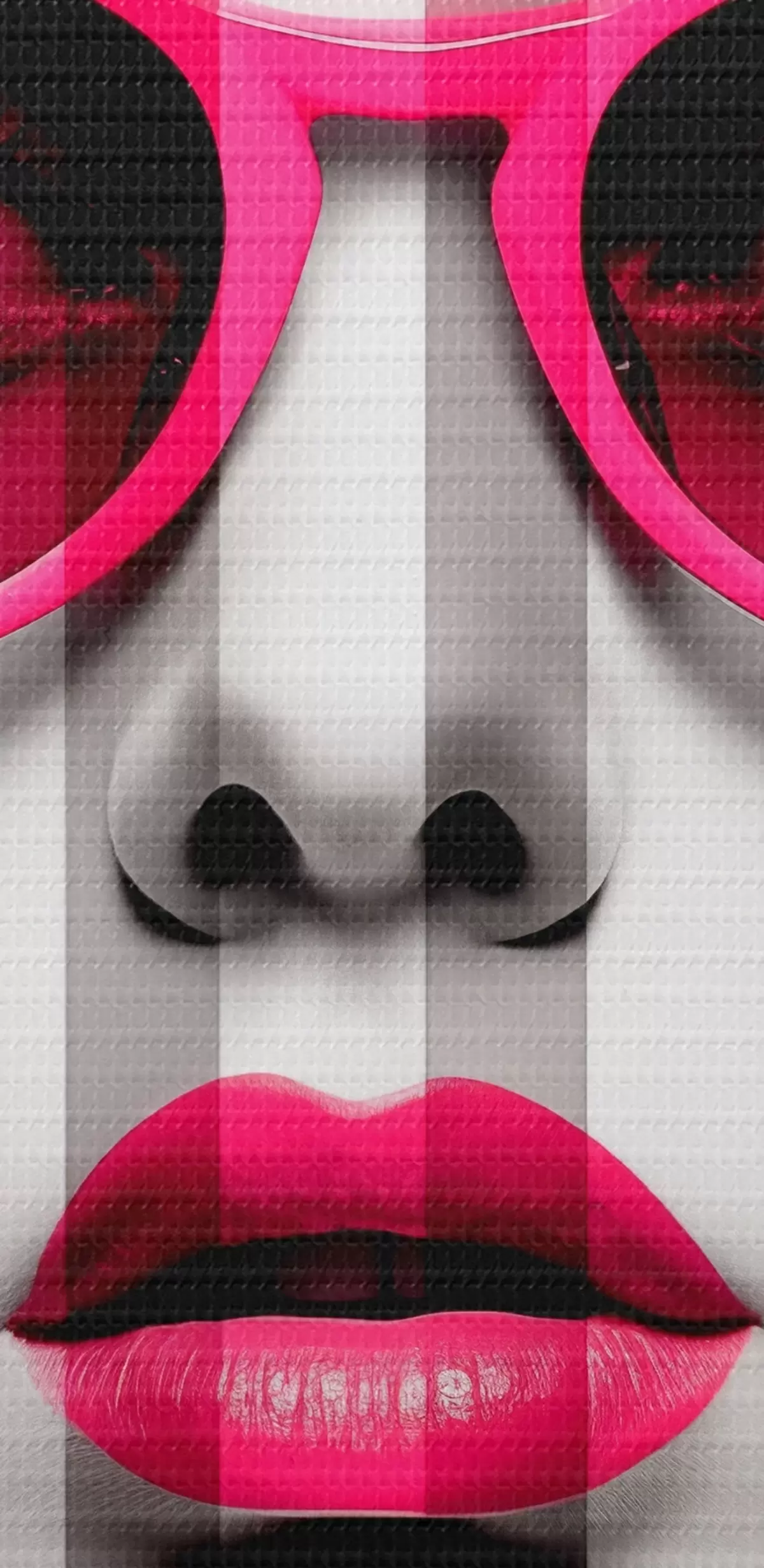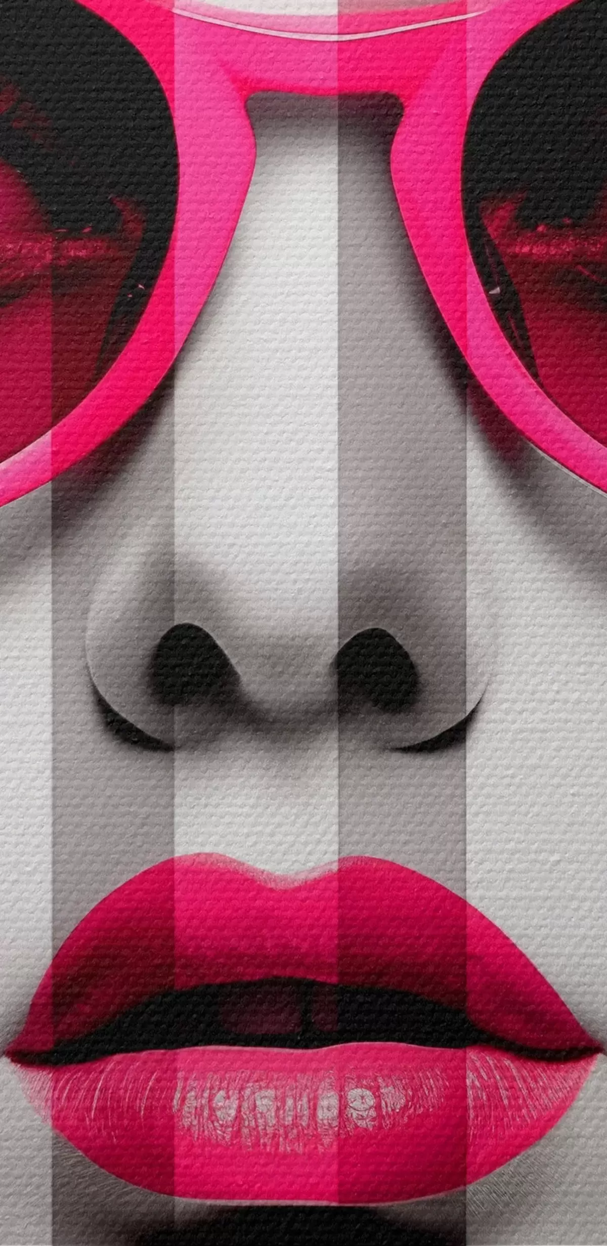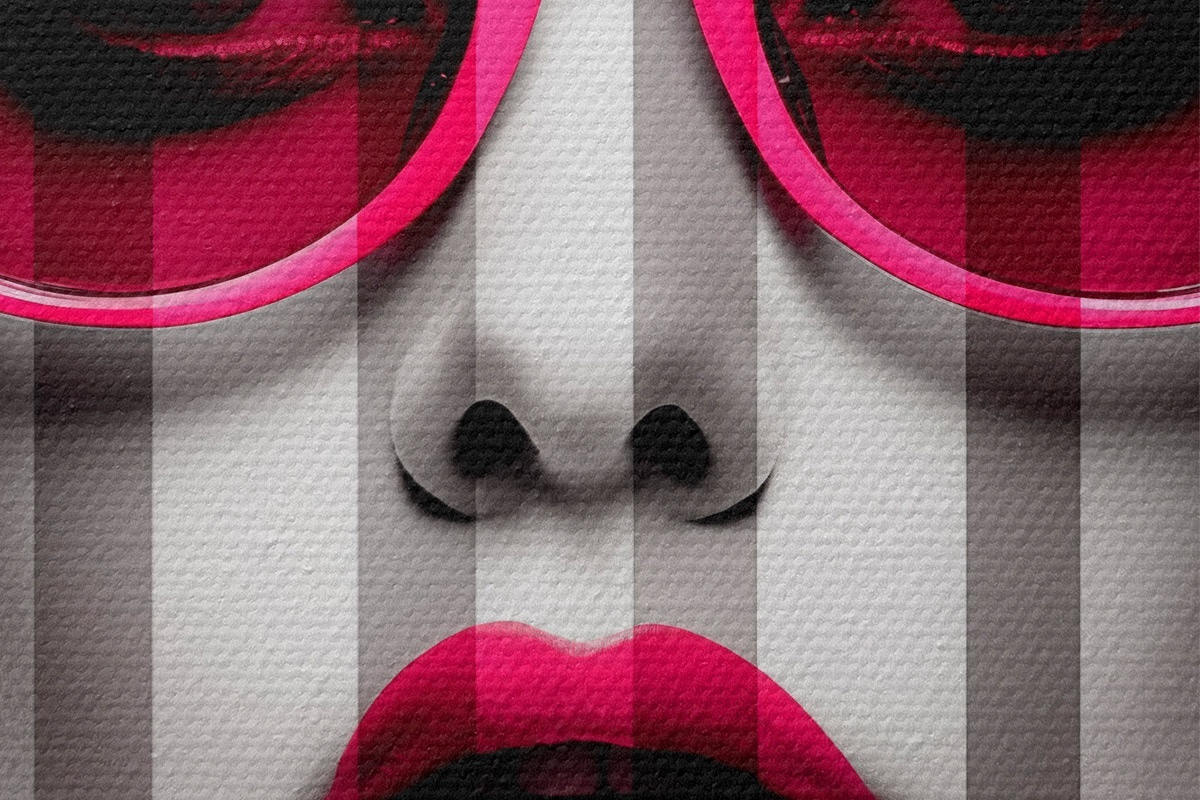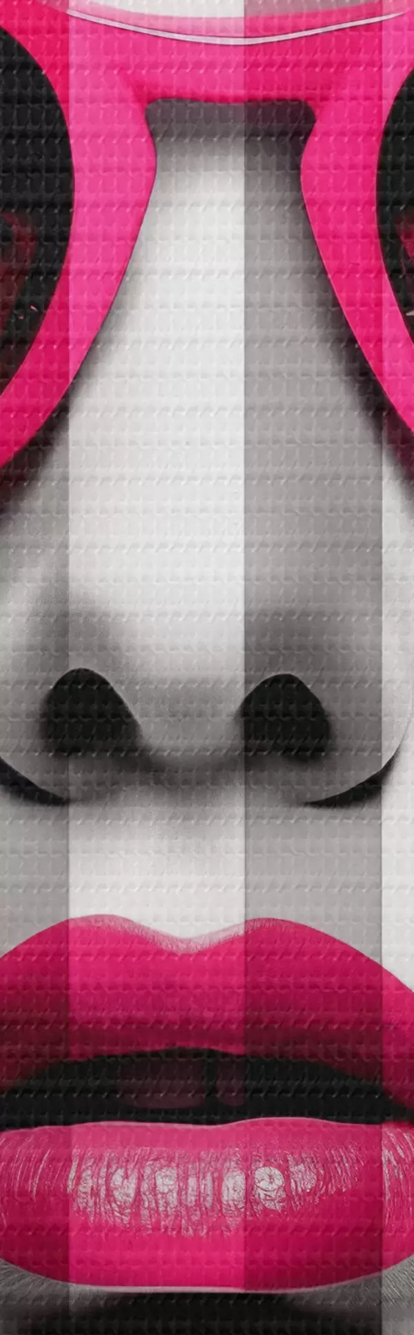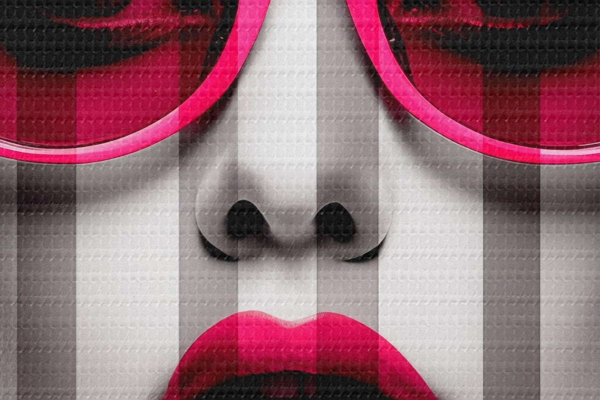 Pilt Naine kannab roosa prille, millel on mustad ja valged triibud Nr r45315