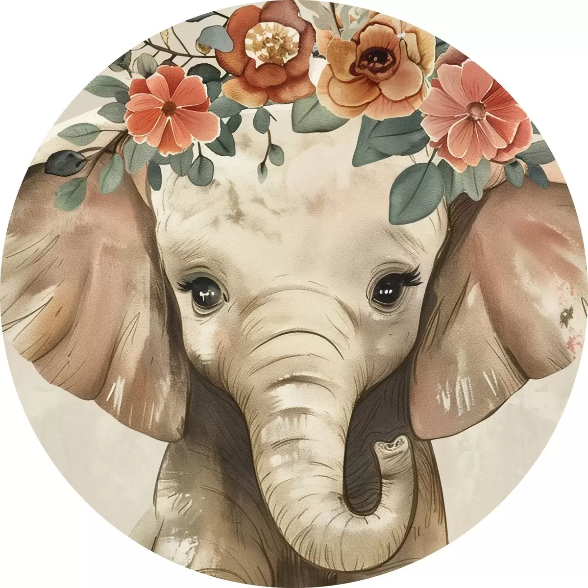 Ümmargused maalid Armas akvarell elevant koos lilledega r45330