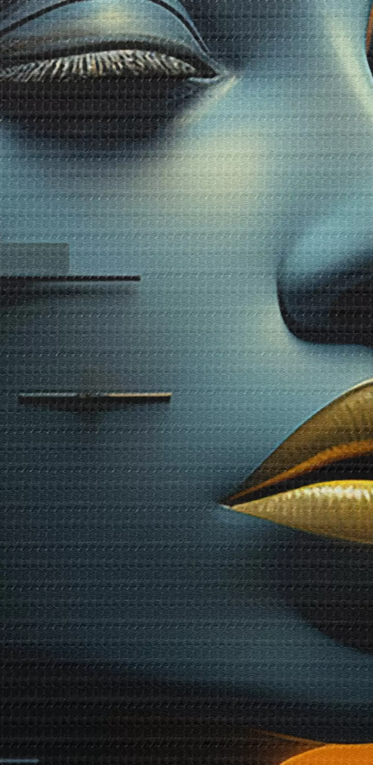 Selle lõuendi peenike niidipunus meenutab professionaalse kunstniku lõuendi pinda.