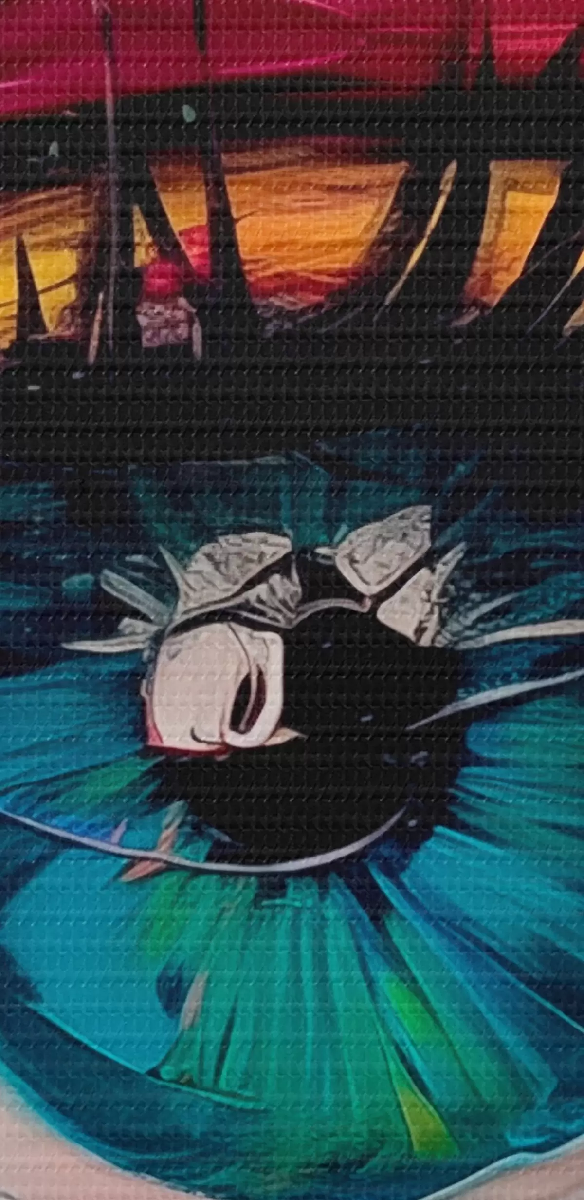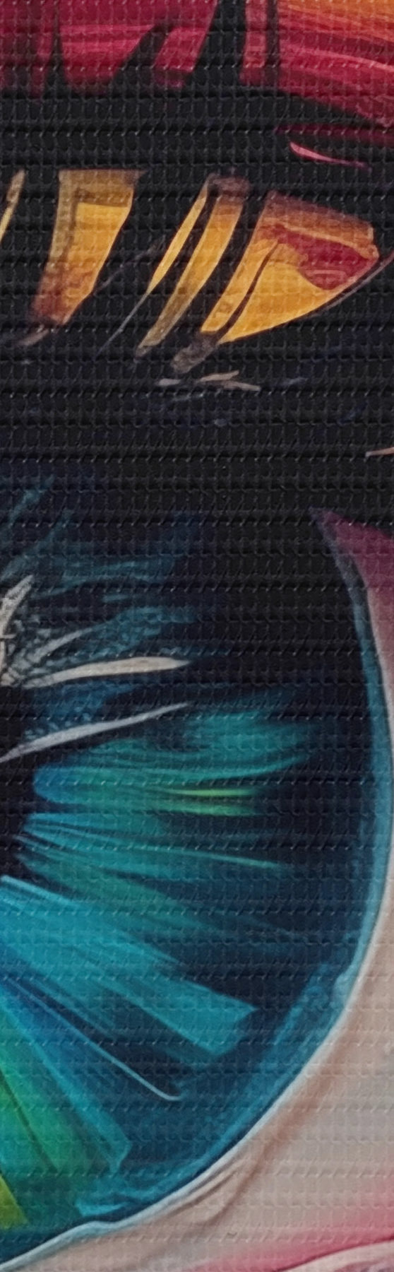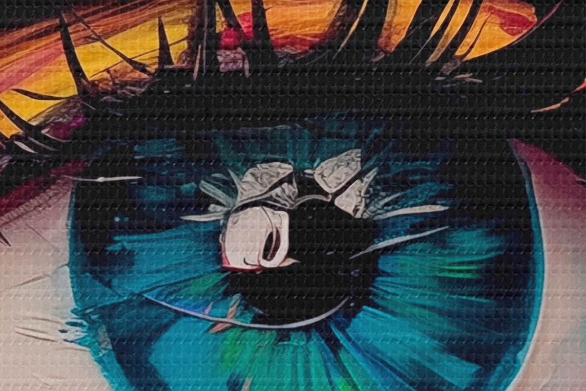 Selle lõuendi peenike niidipunus meenutab professionaalse kunstniku lõuendi pinda.