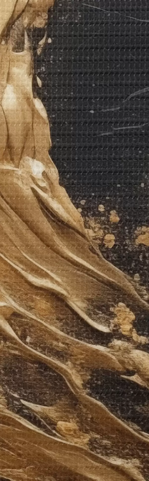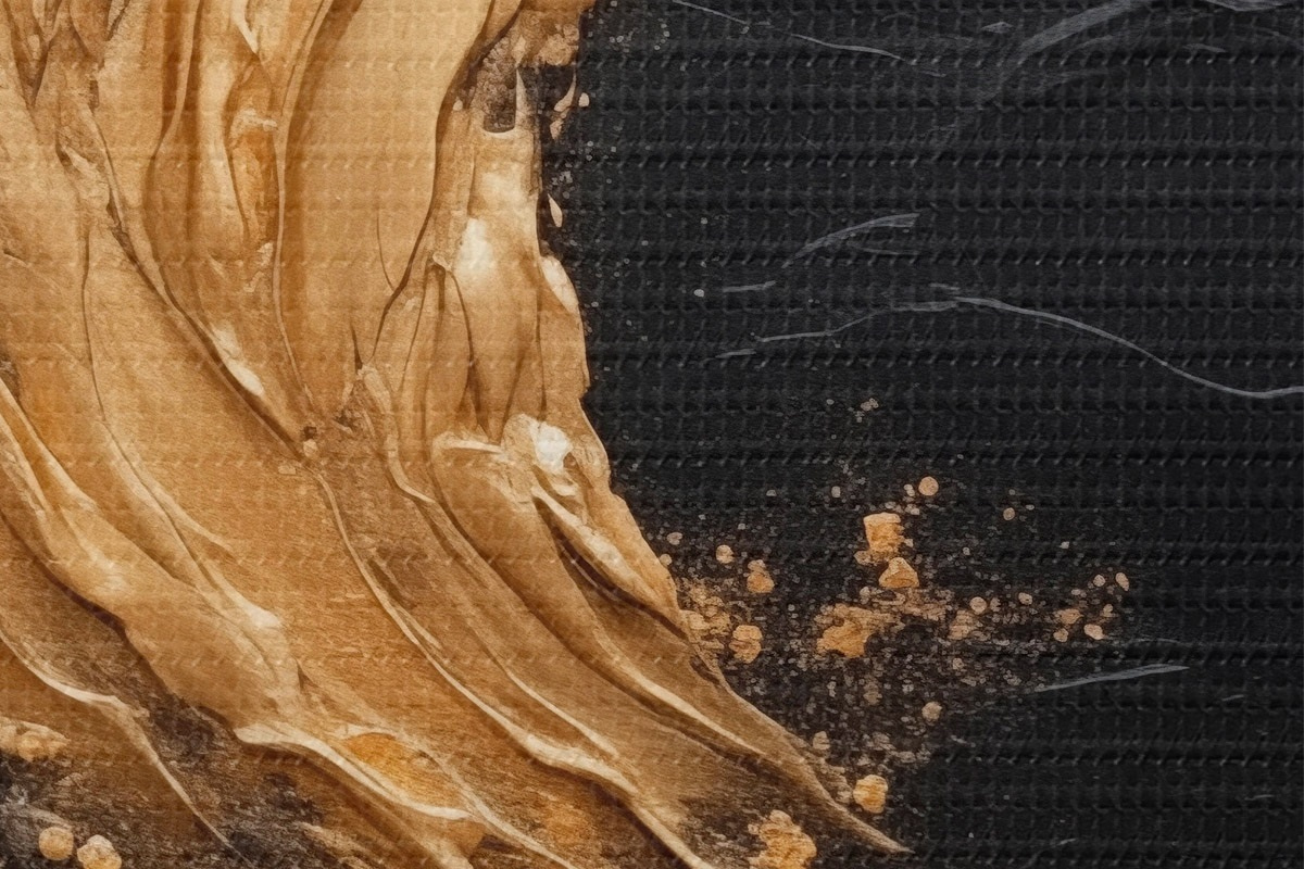 Selle lõuendi peenike niidipunus meenutab professionaalse kunstniku lõuendi pinda.