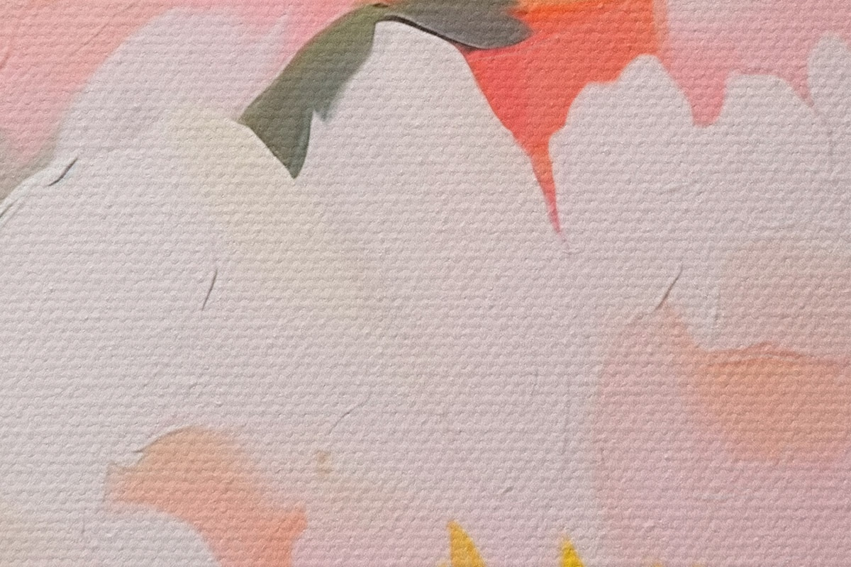 Selle lõuendi peenike niidipunus meenutab professionaalse kunstniku lõuendi pinda.