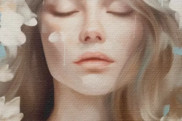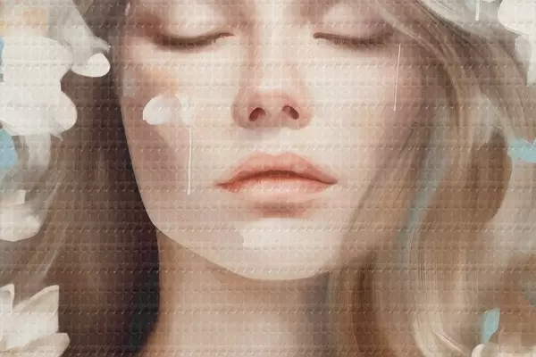 Pilt Abstraktne portree naisest koos pintslitõmmetega lilledega Nr r45450
