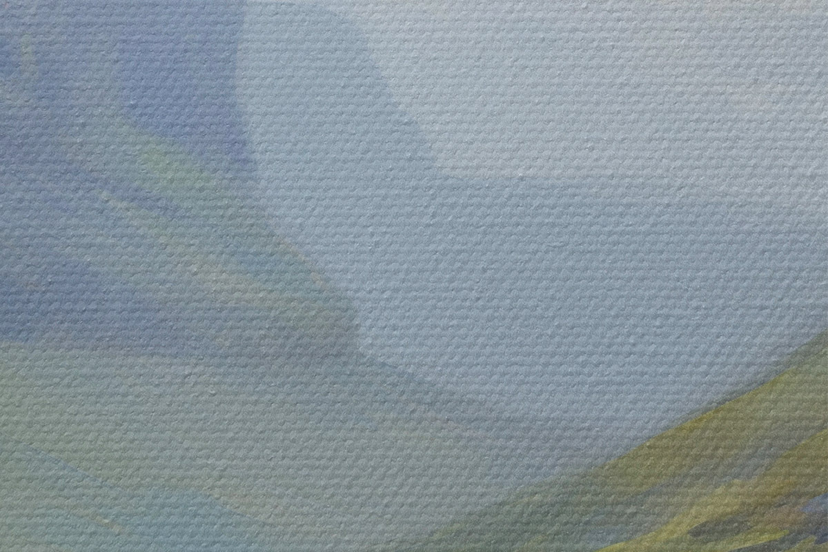 Selle lõuendi peenike niidipunus meenutab professionaalse kunstniku lõuendi pinda.