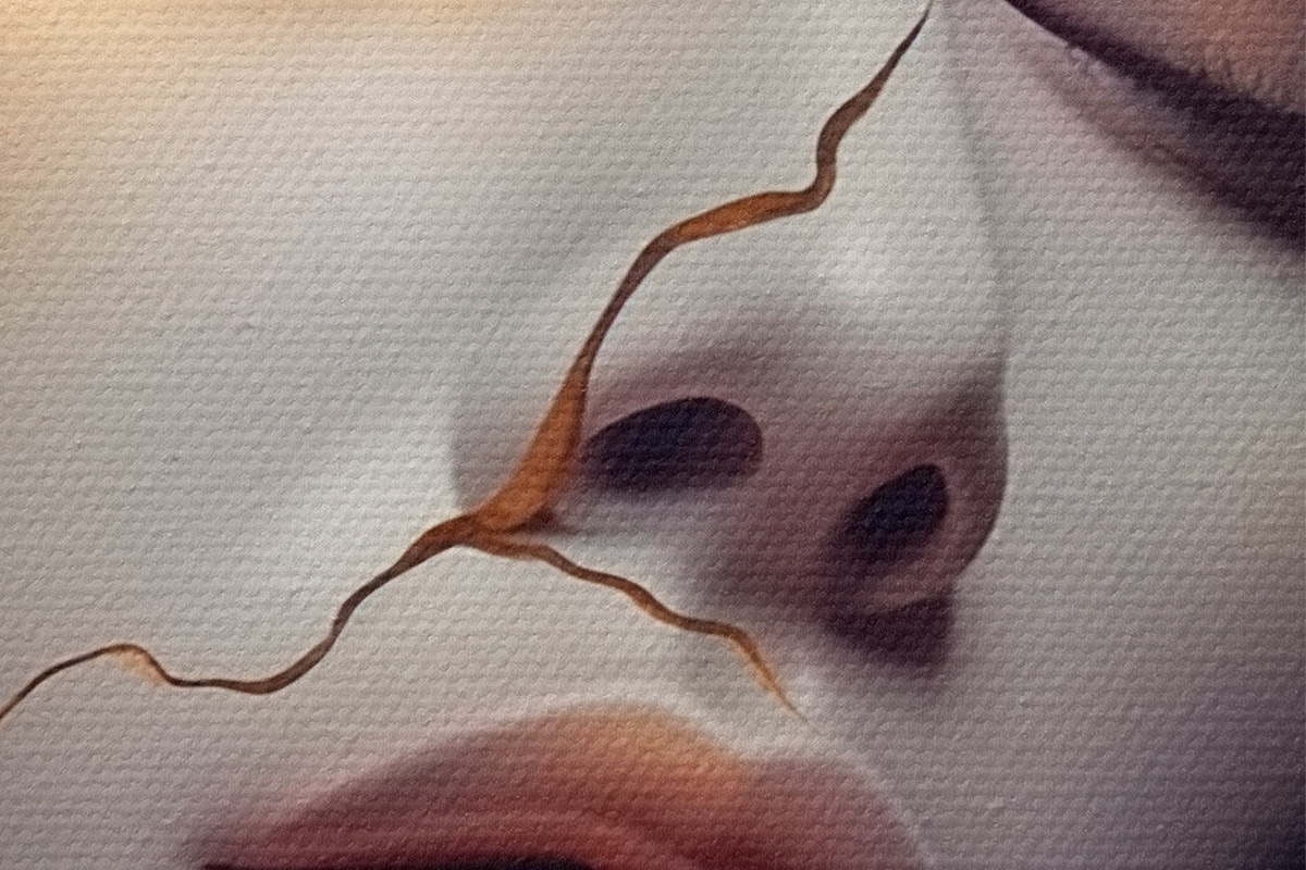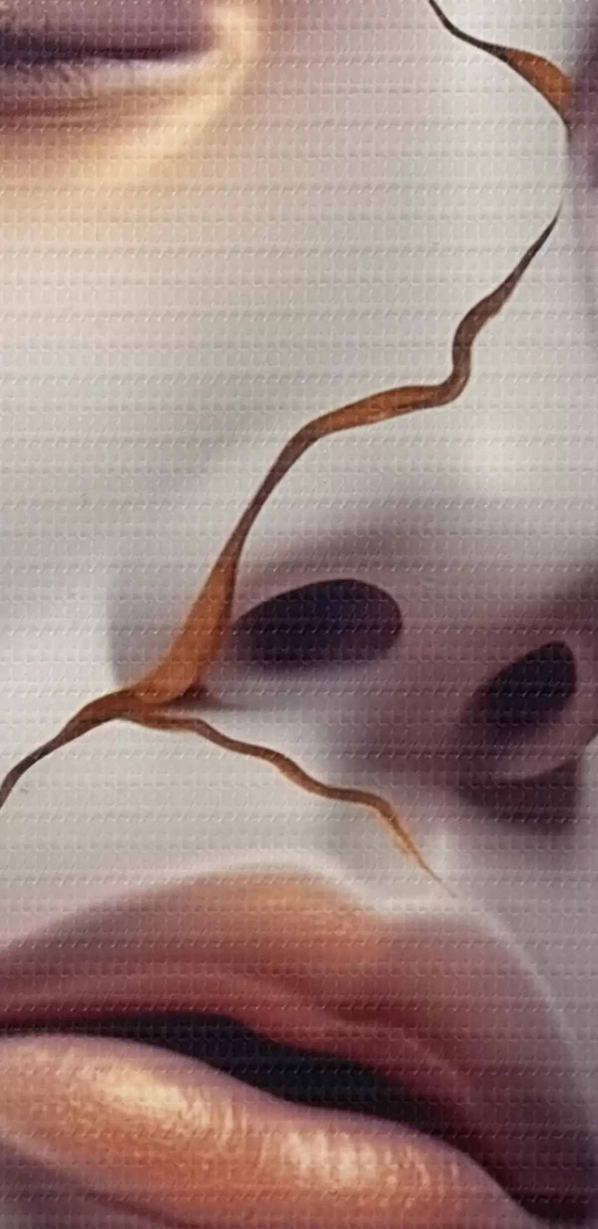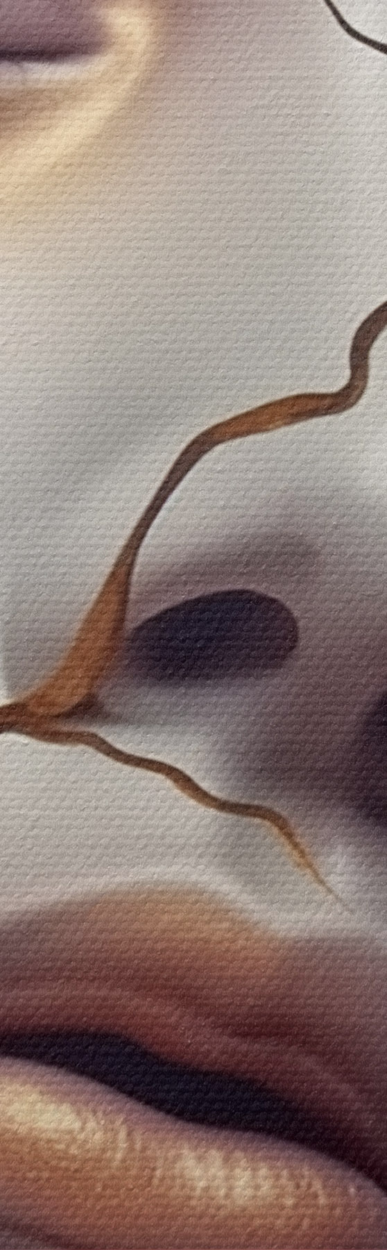 Selle lõuendi peenike niidipunus meenutab professionaalse kunstniku lõuendi pinda.