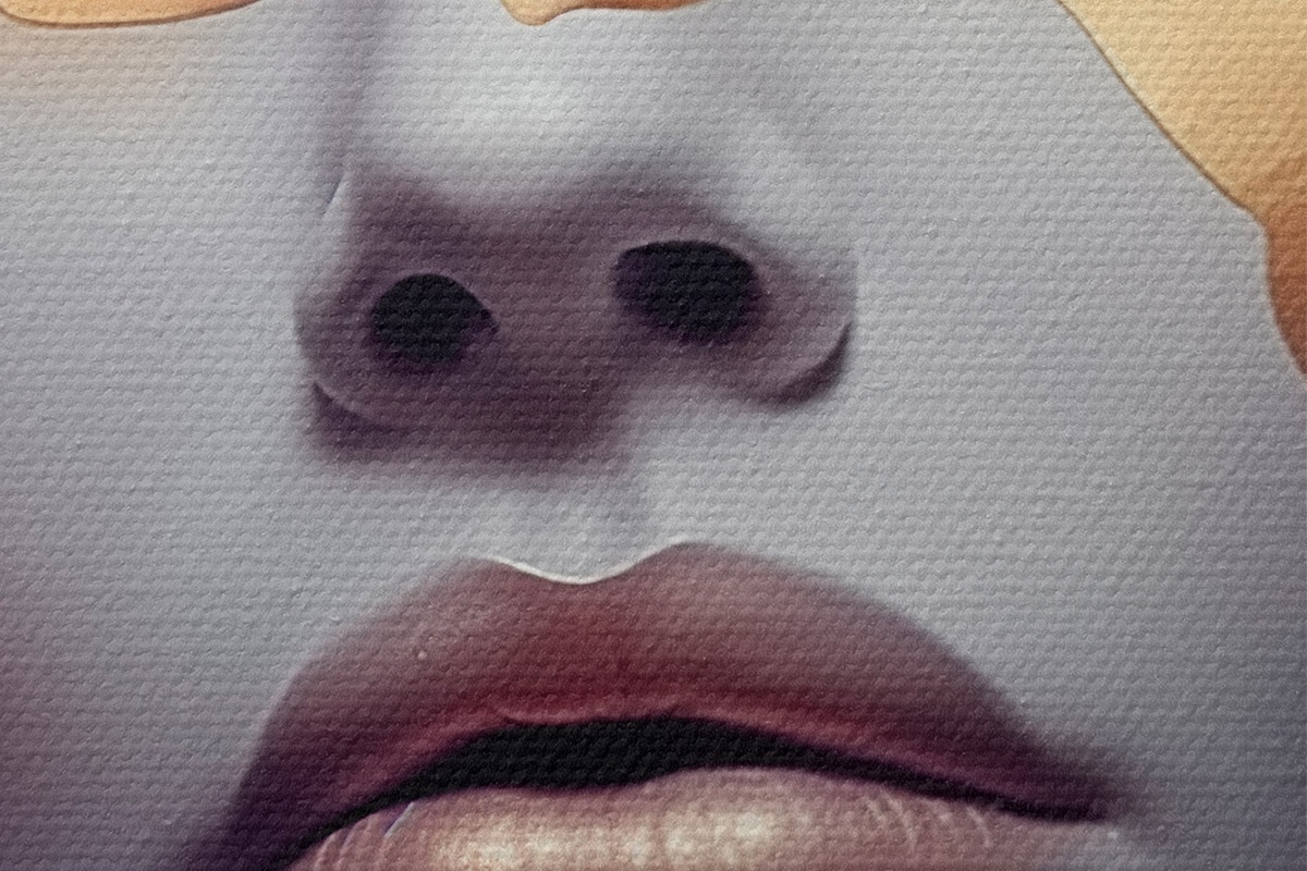 Selle lõuendi peenike niidipunus meenutab professionaalse kunstniku lõuendi pinda.