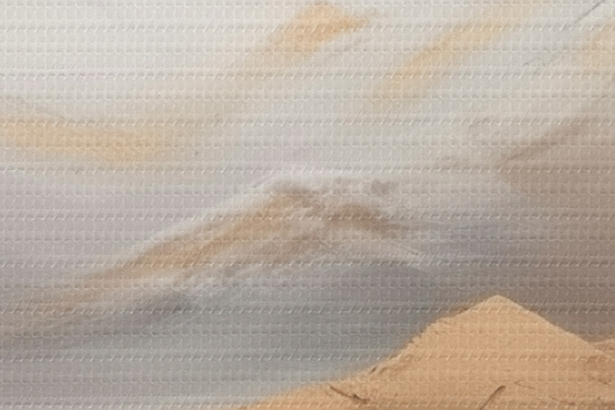 Selle lõuendi peenike niidipunus meenutab professionaalse kunstniku lõuendi pinda.