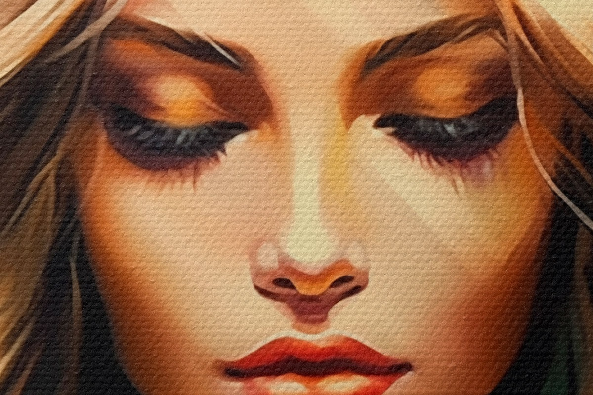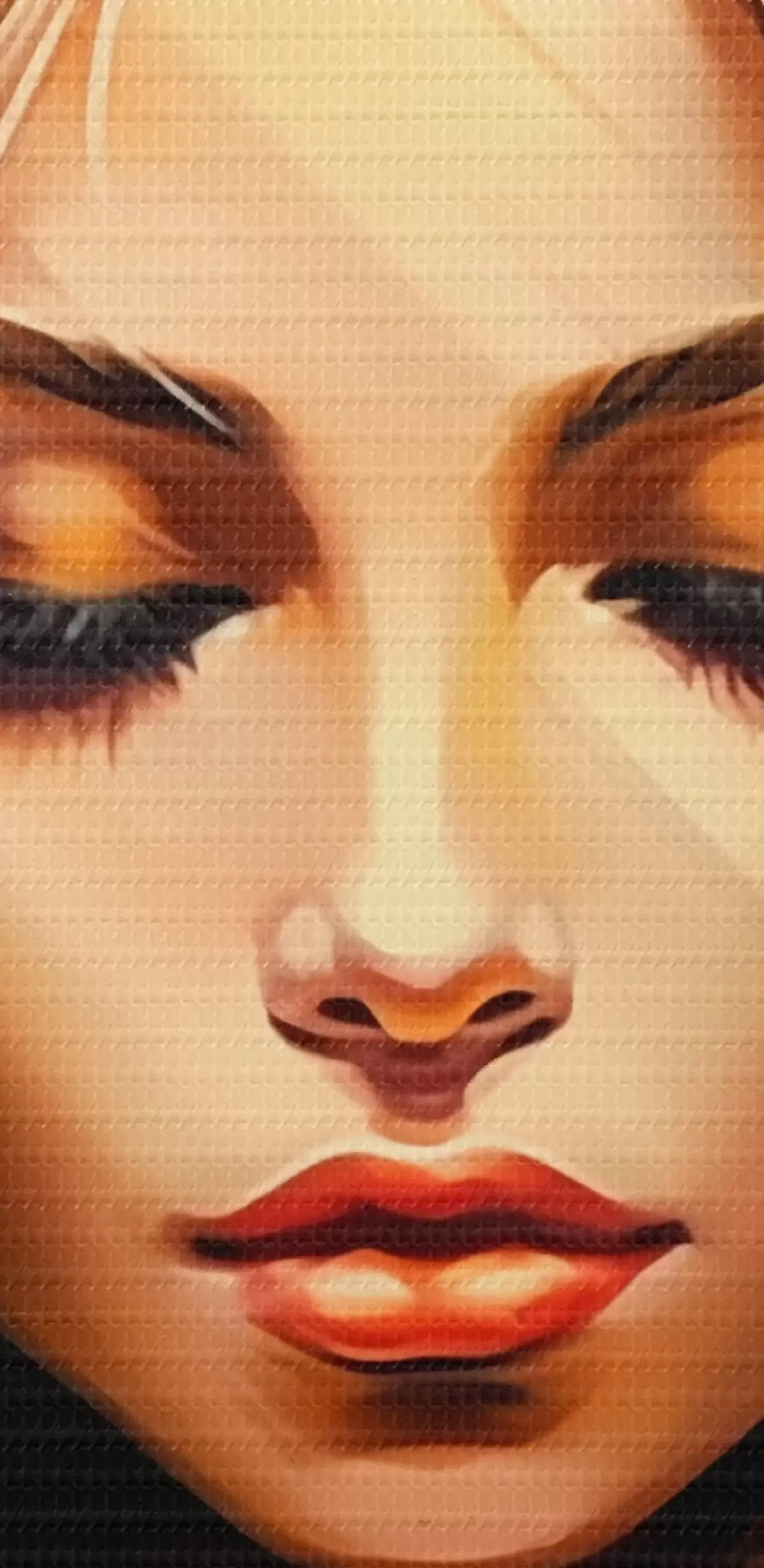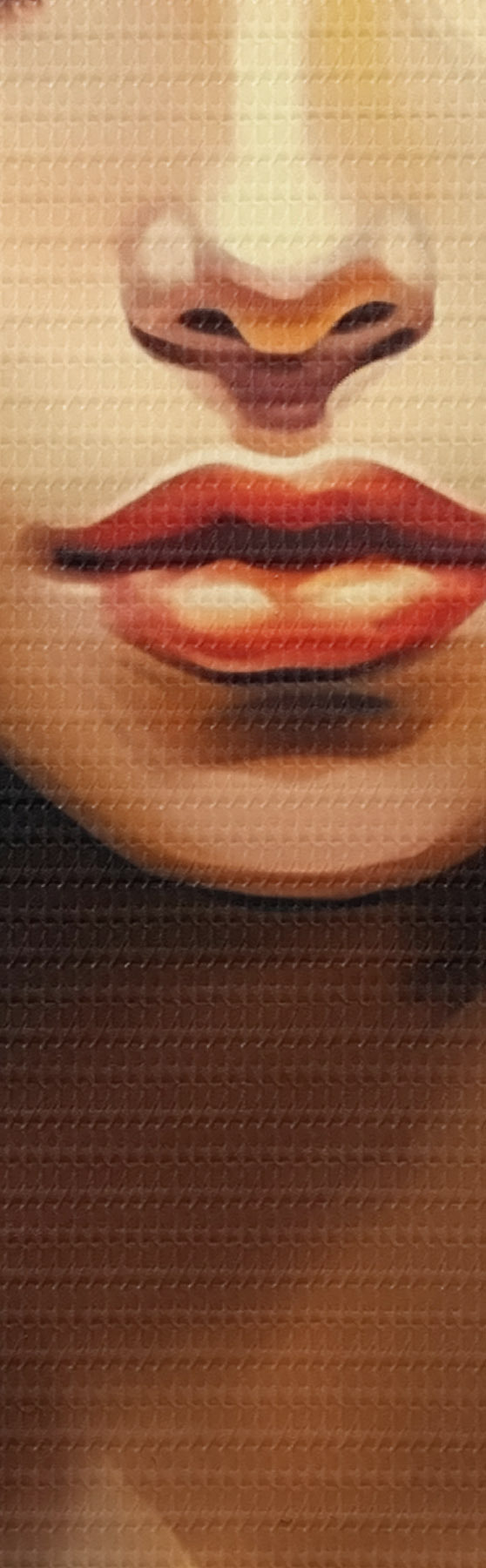 Selle lõuendi peenike niidipunus meenutab professionaalse kunstniku lõuendi pinda.