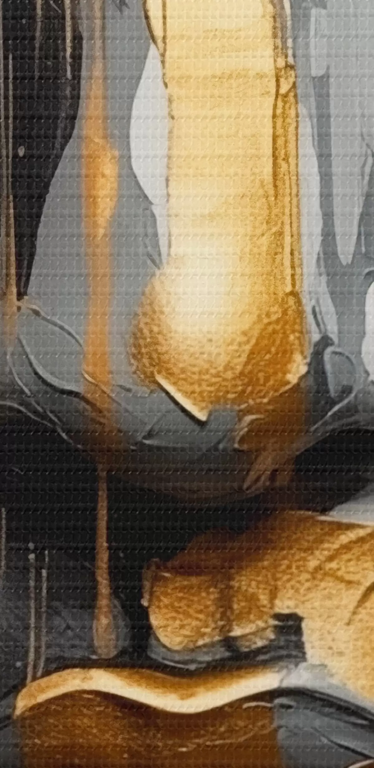 Selle lõuendi peenike niidipunus meenutab professionaalse kunstniku lõuendi pinda.