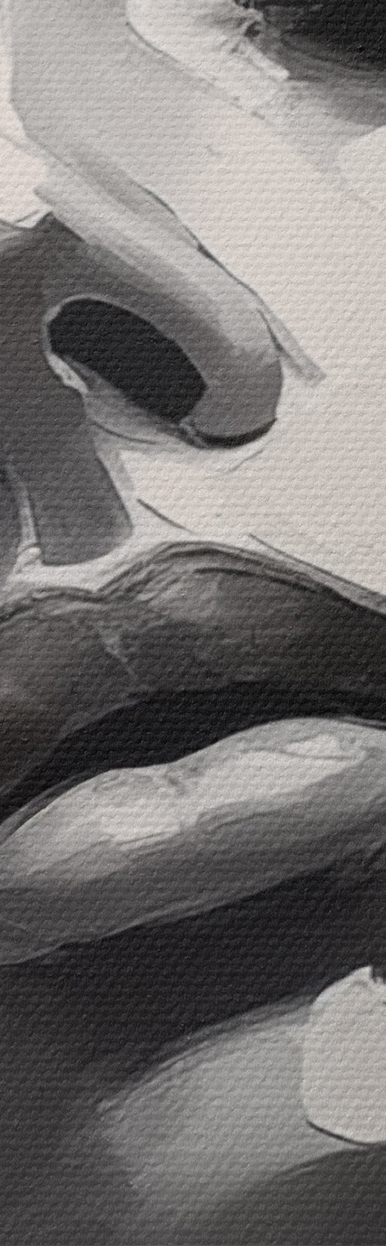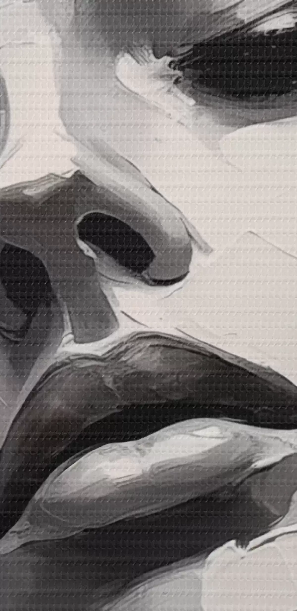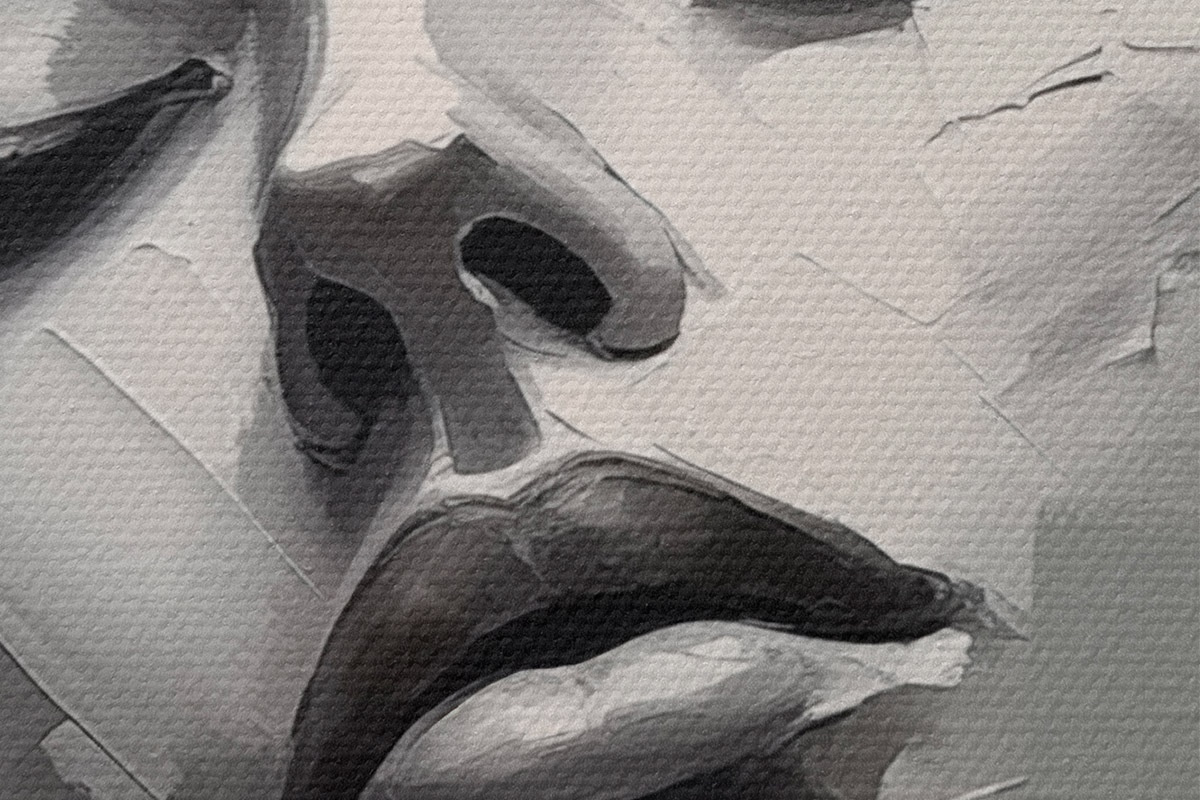 Selle lõuendi peenike niidipunus meenutab professionaalse kunstniku lõuendi pinda.