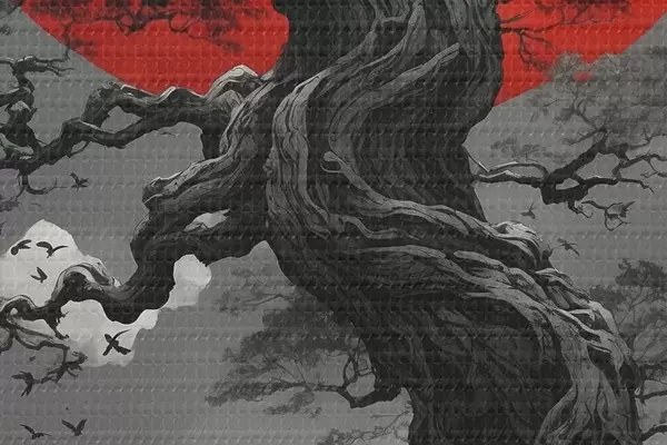Pilt Abstraktne maastik koos mägedega paberi stiilis Nr r45485