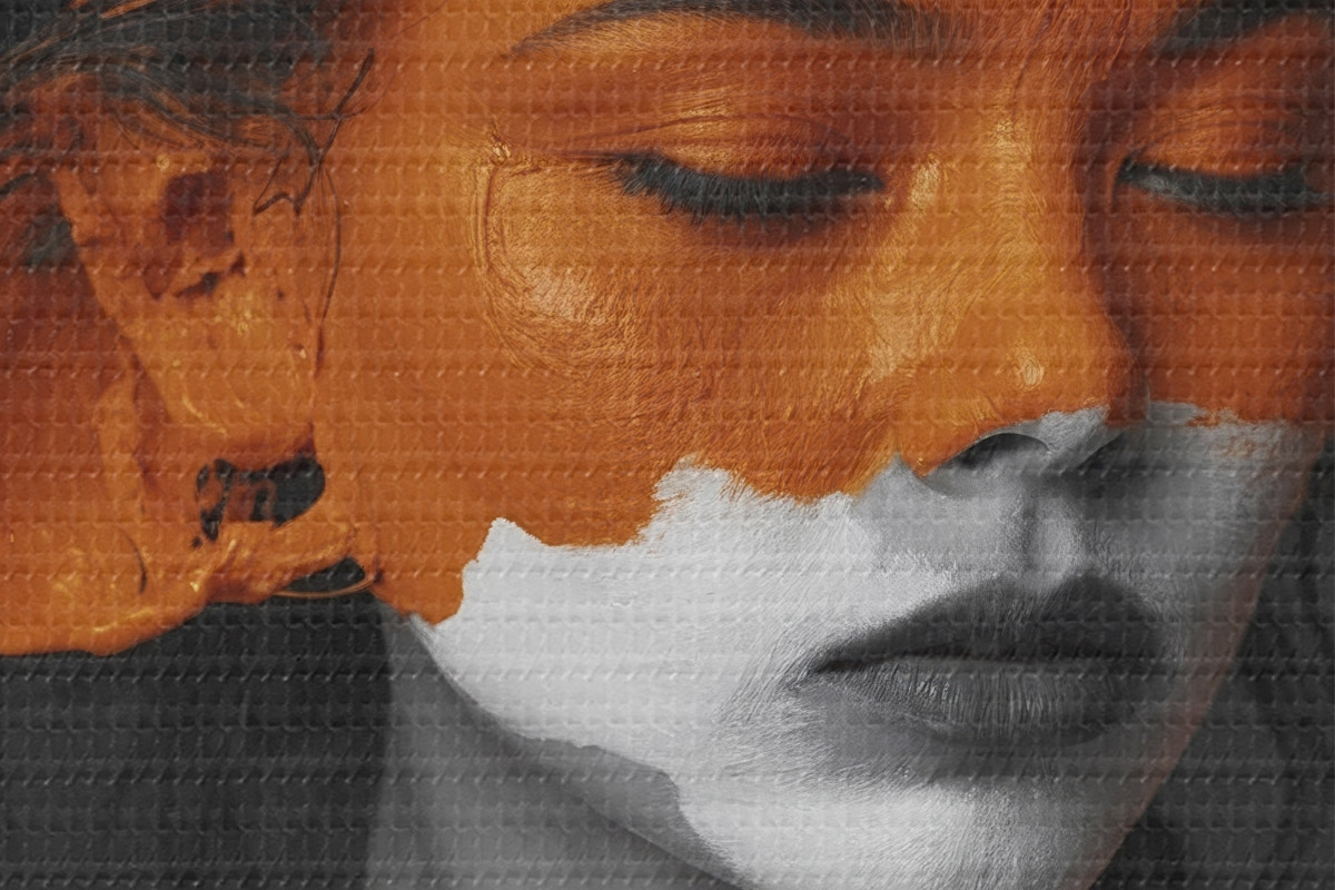 Selle lõuendi peenike niidipunus meenutab professionaalse kunstniku lõuendi pinda.