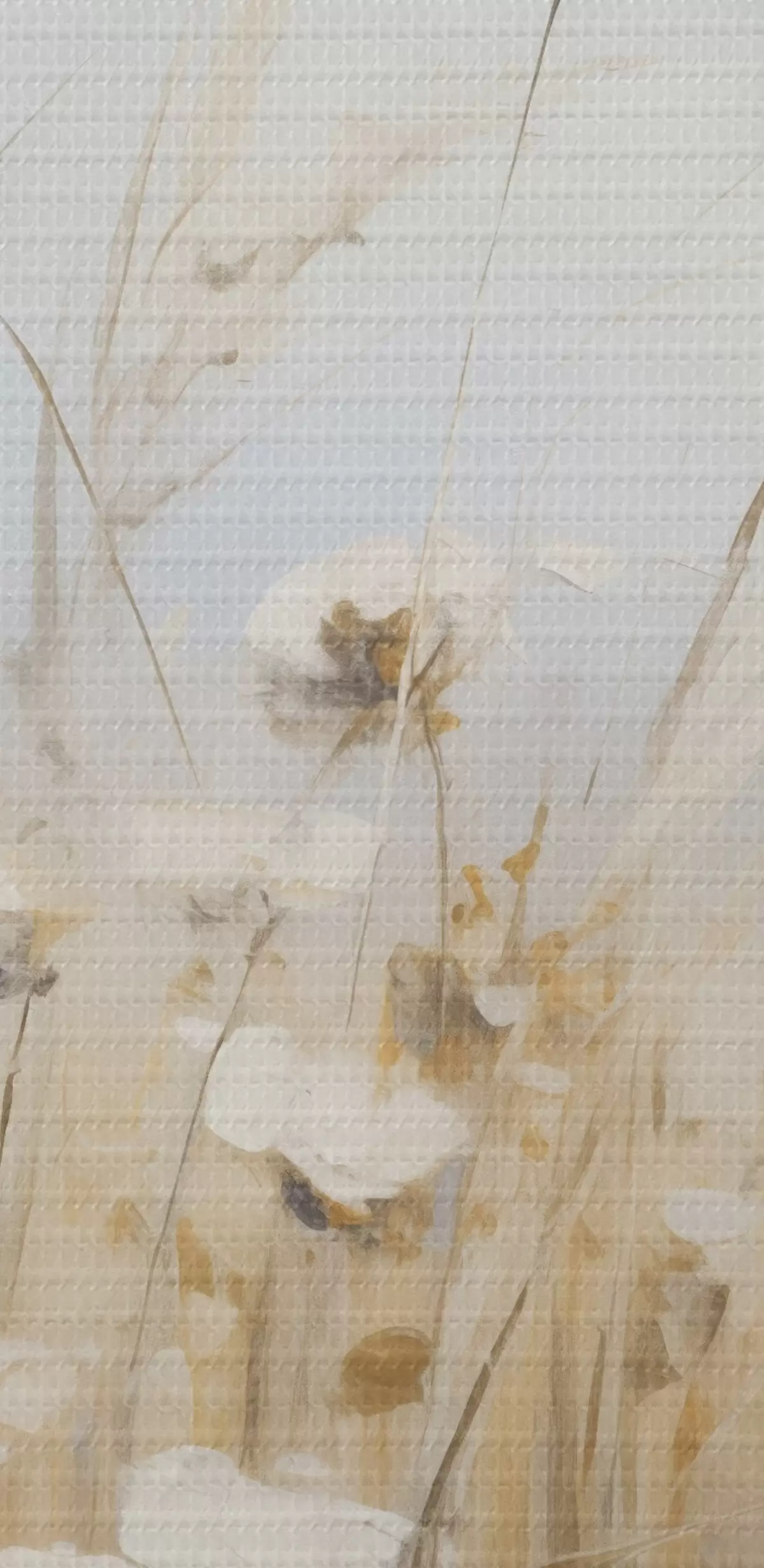 Selle lõuendi peenike niidipunus meenutab professionaalse kunstniku lõuendi pinda.