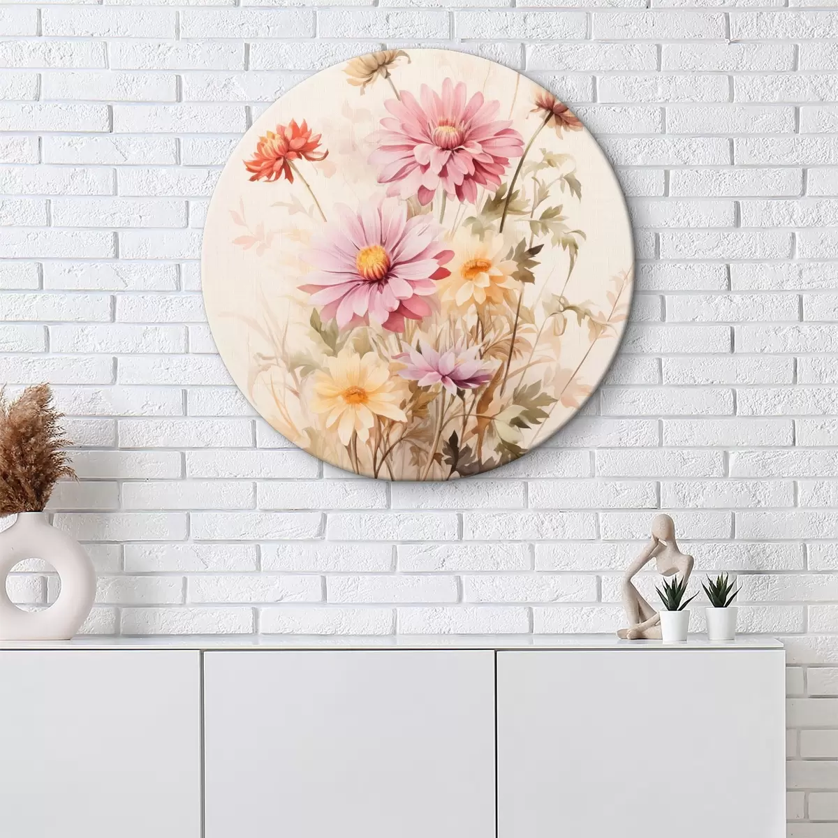 Pilt Värviliste lillede kimp, pehme akvarellstiil, heledal taustal, botaaniline illustratsioon Nr r45560