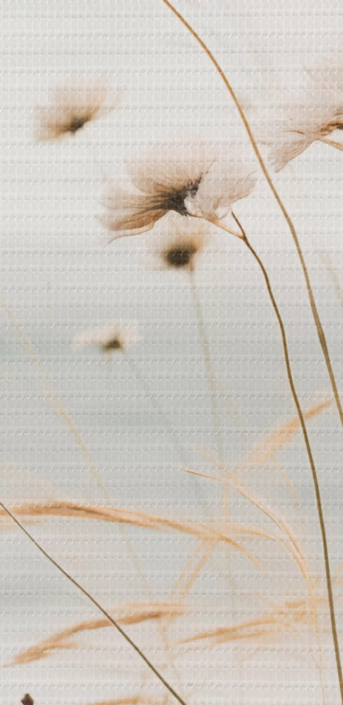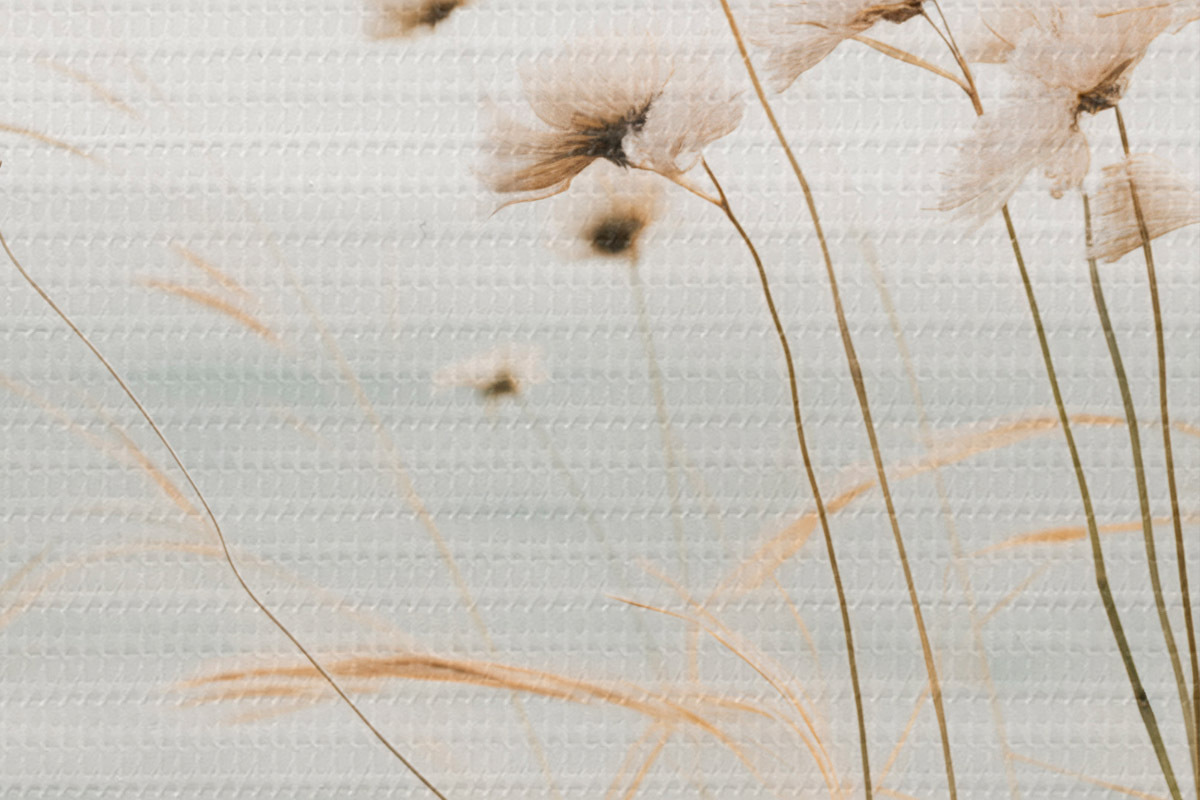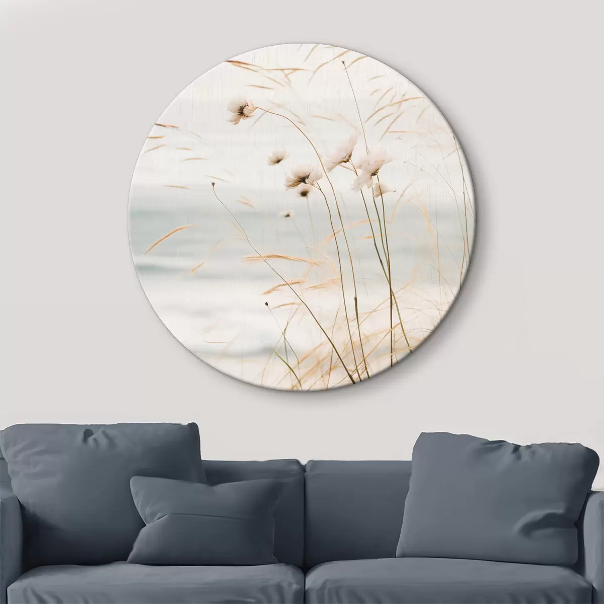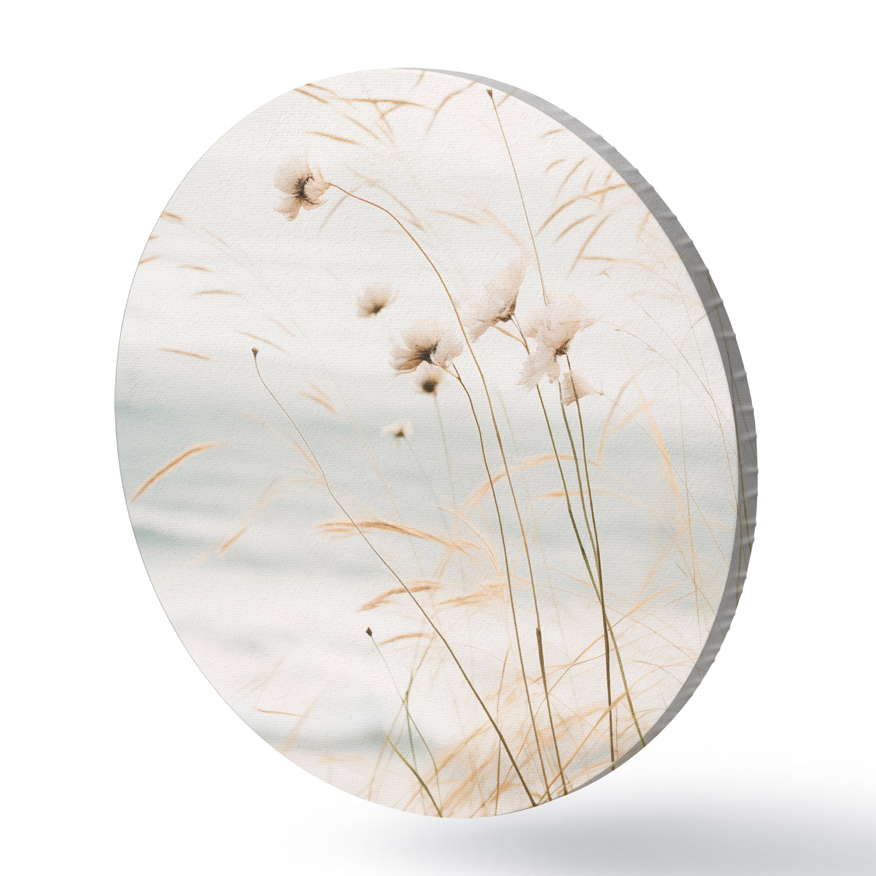 Pilt Natuke puuvillast rohtu ja muud kuiva rohtu ähmase mere ees, pehme ja vaoshoitud värvipalett Nr r45562