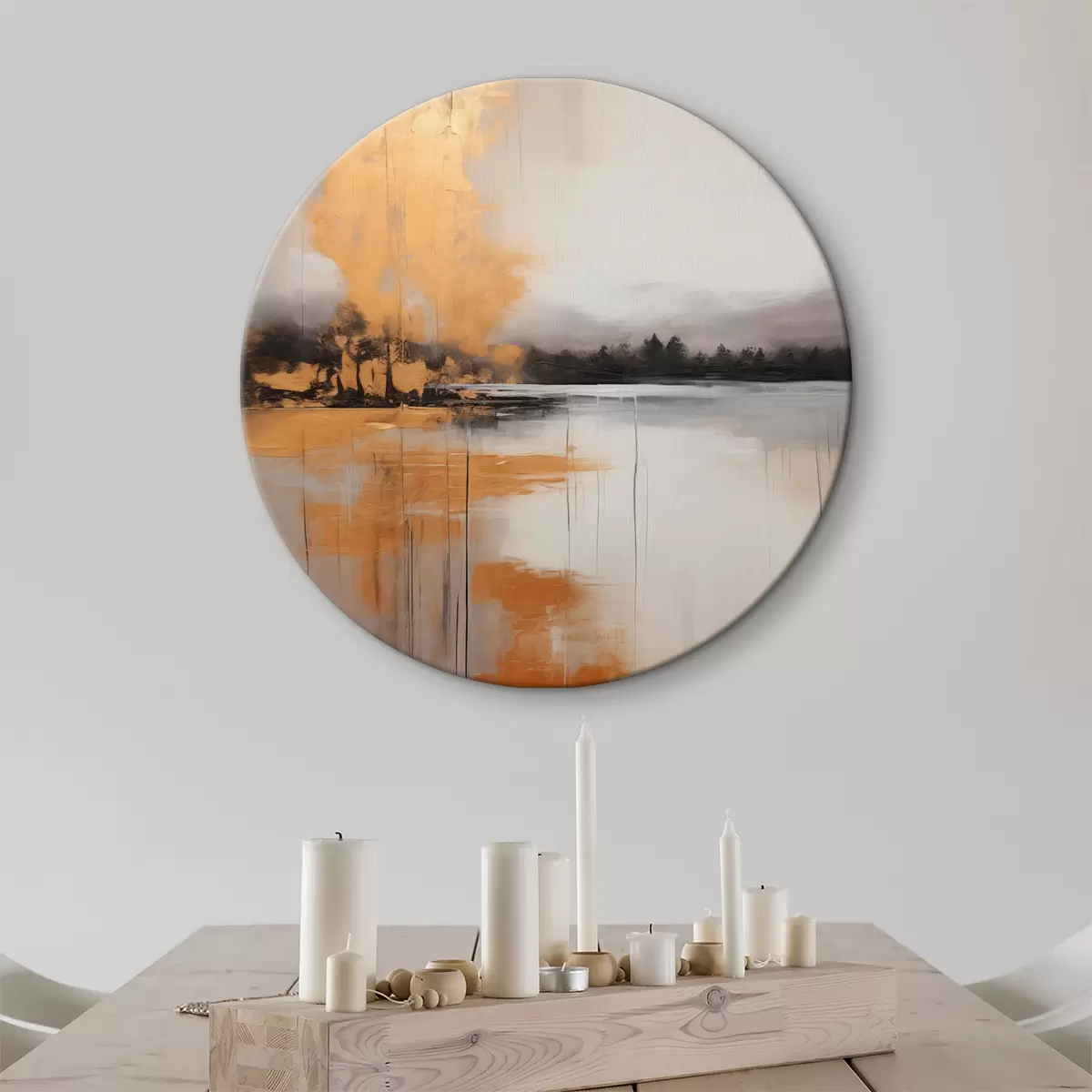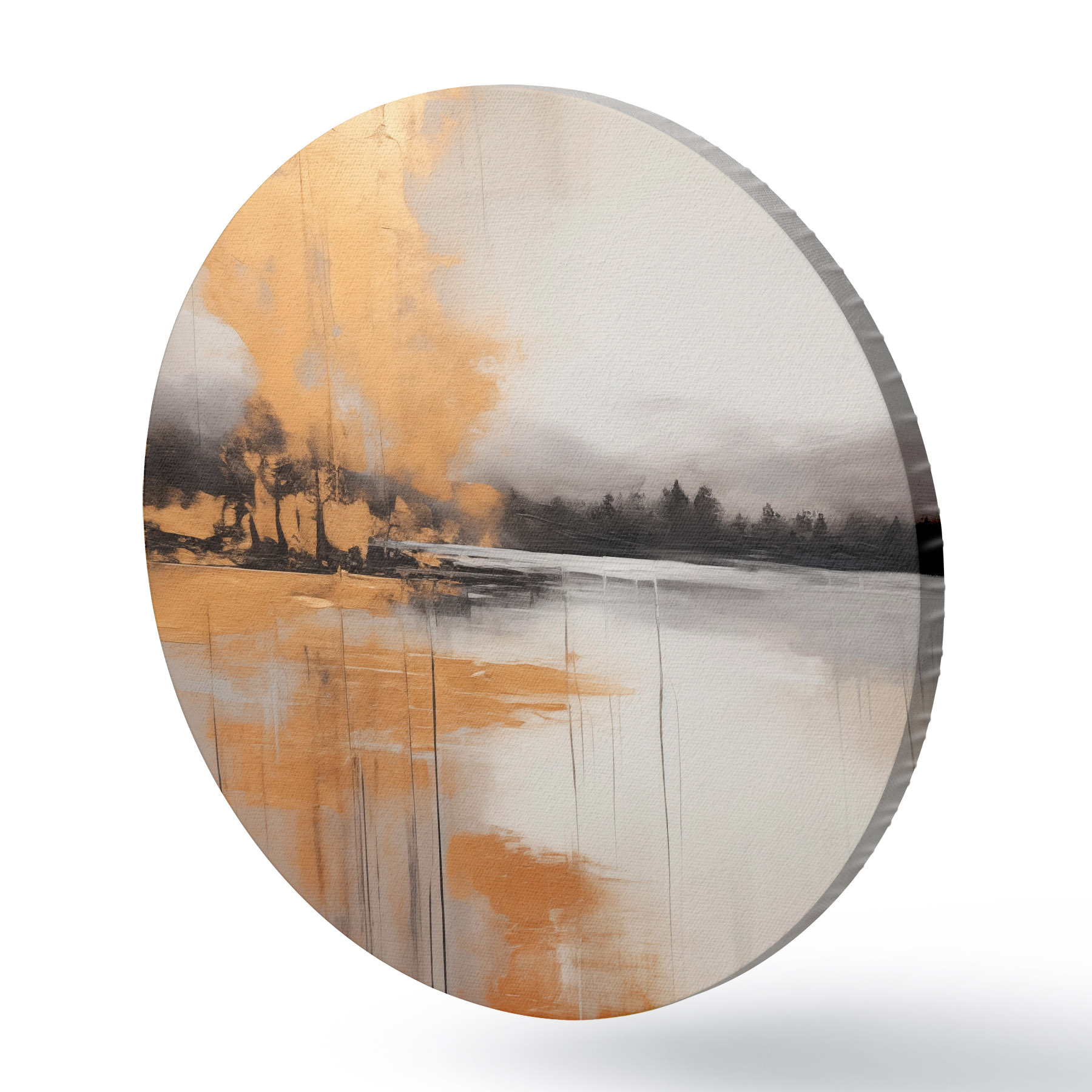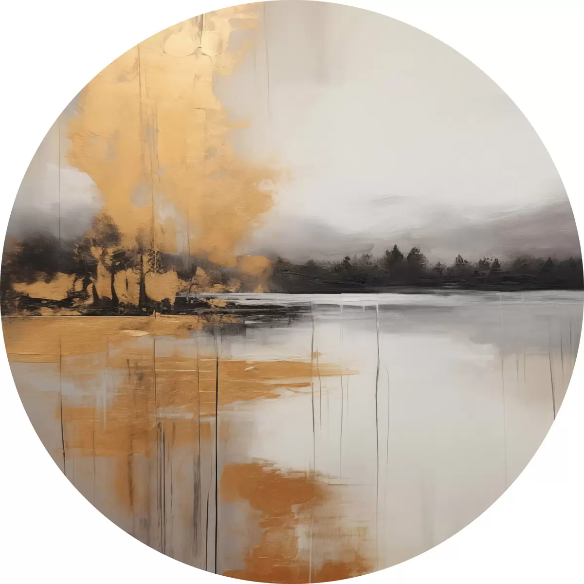 Pilt Abstraktne maastik järve, puu ja kollase uduga , vesi peegeldab ja pilvine taevas Nr r45575