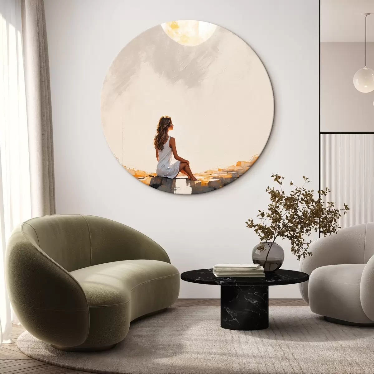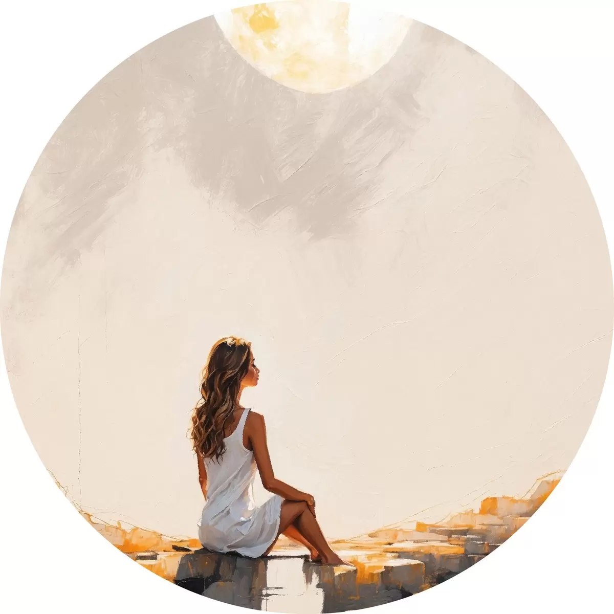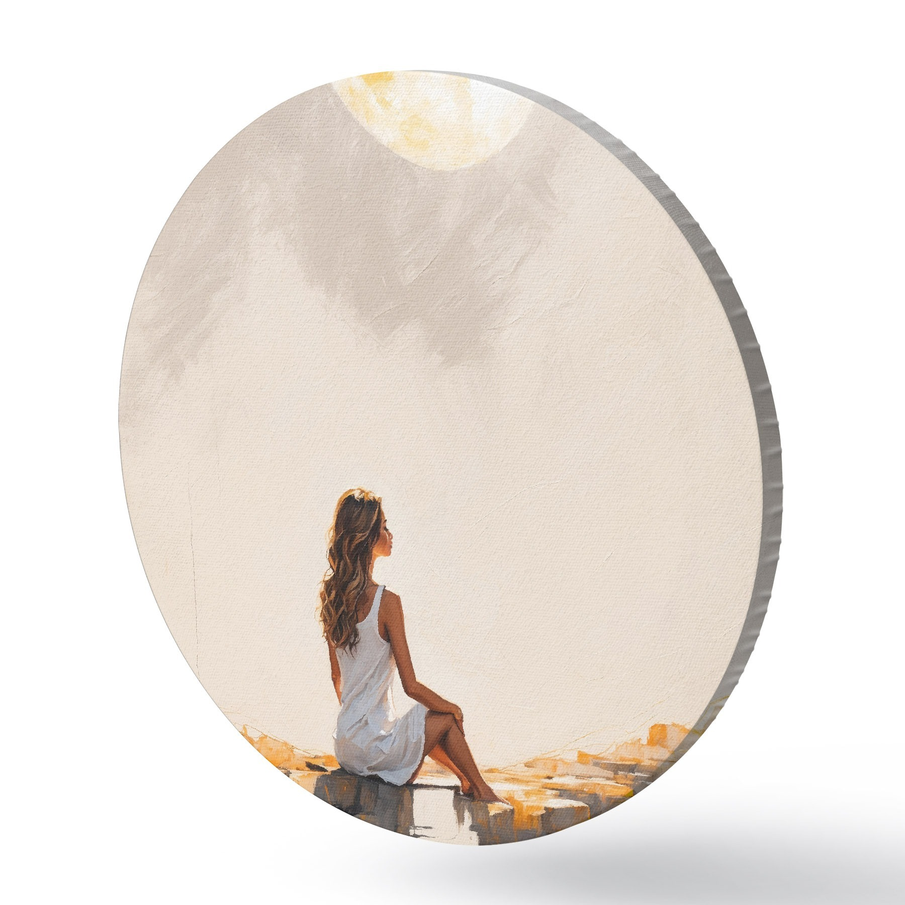 Pilt Tüdruk valges kleidis istub suure kuu all Nr r45621