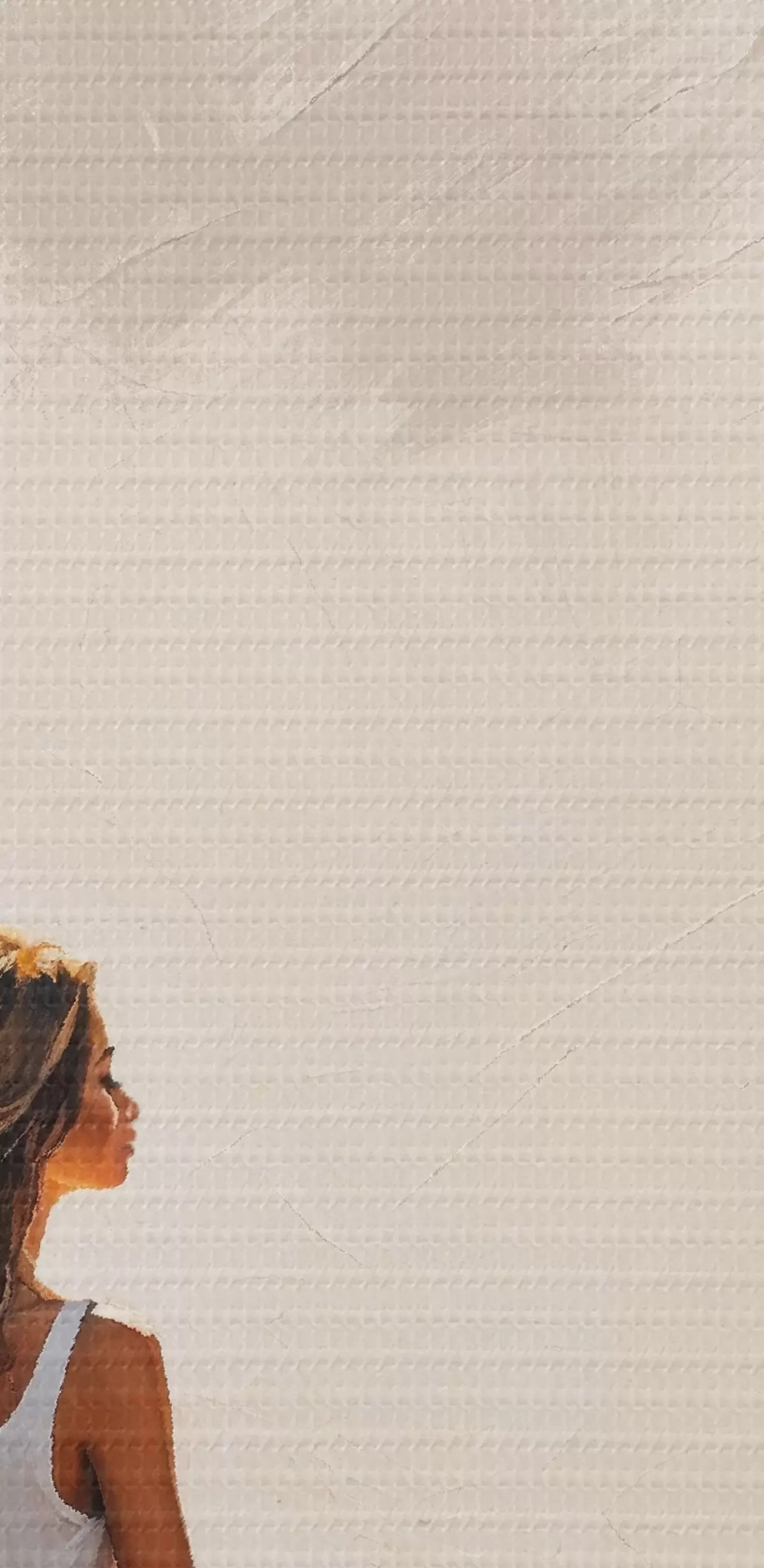 Selle lõuendi peenike niidipunus meenutab professionaalse kunstniku lõuendi pinda.