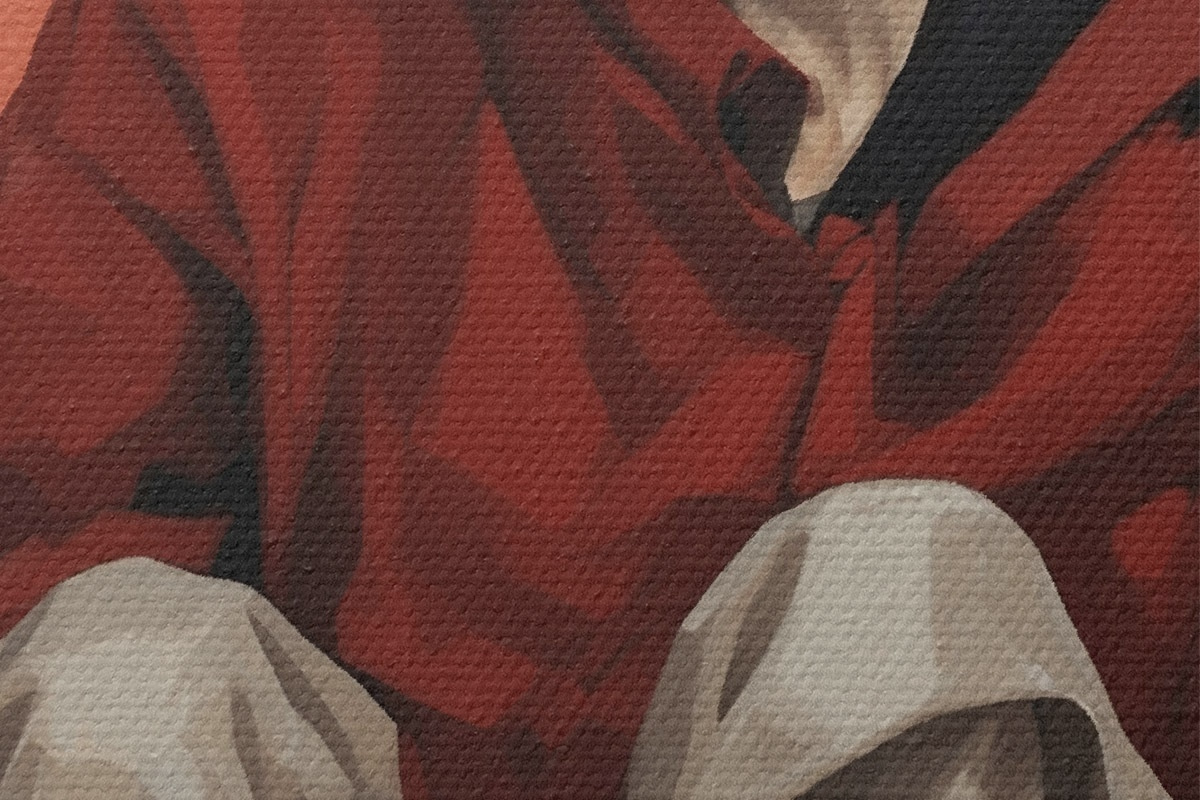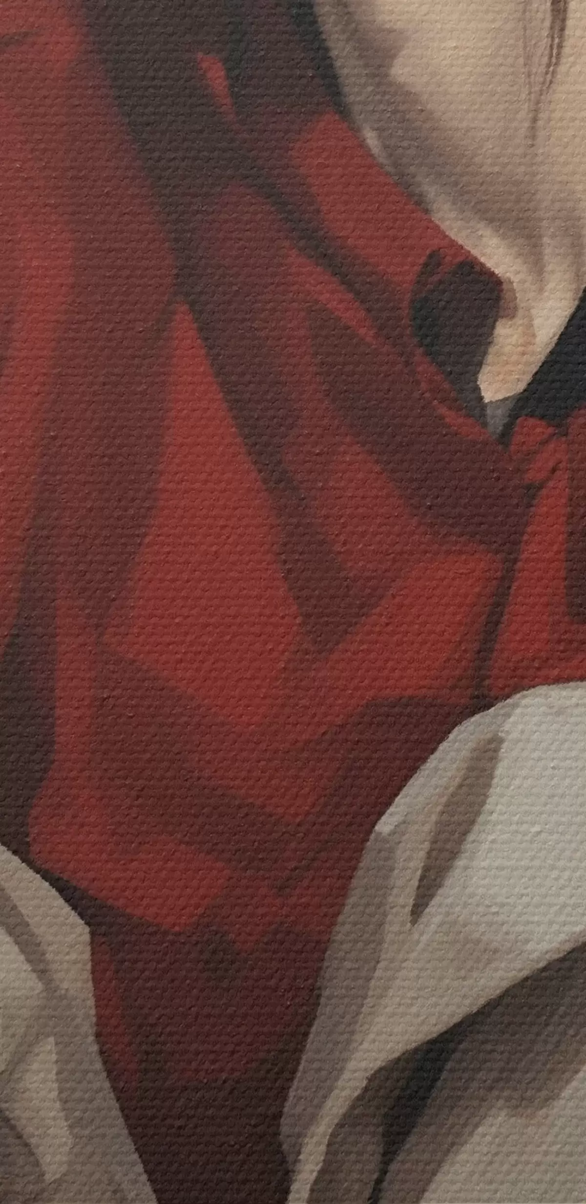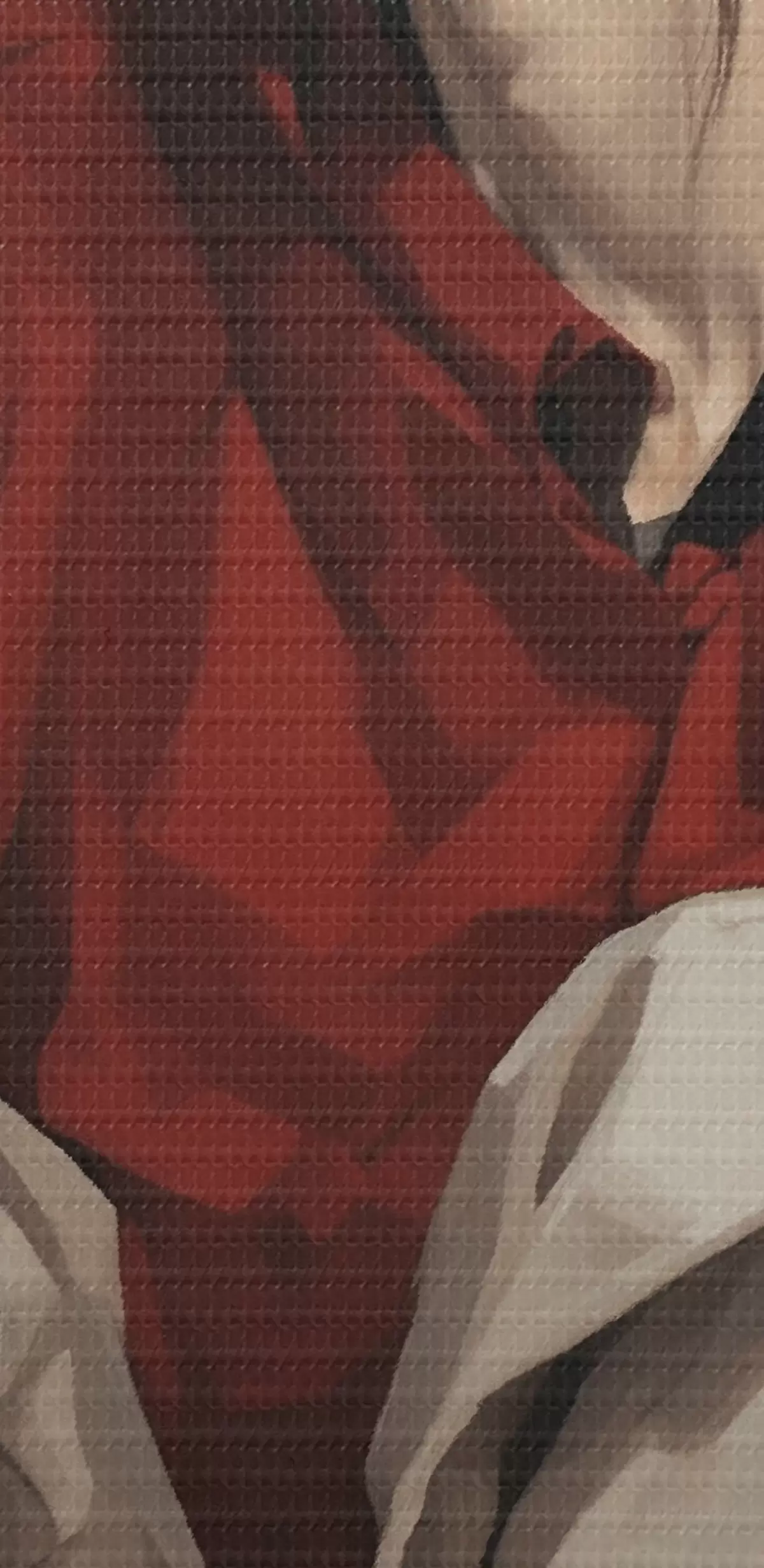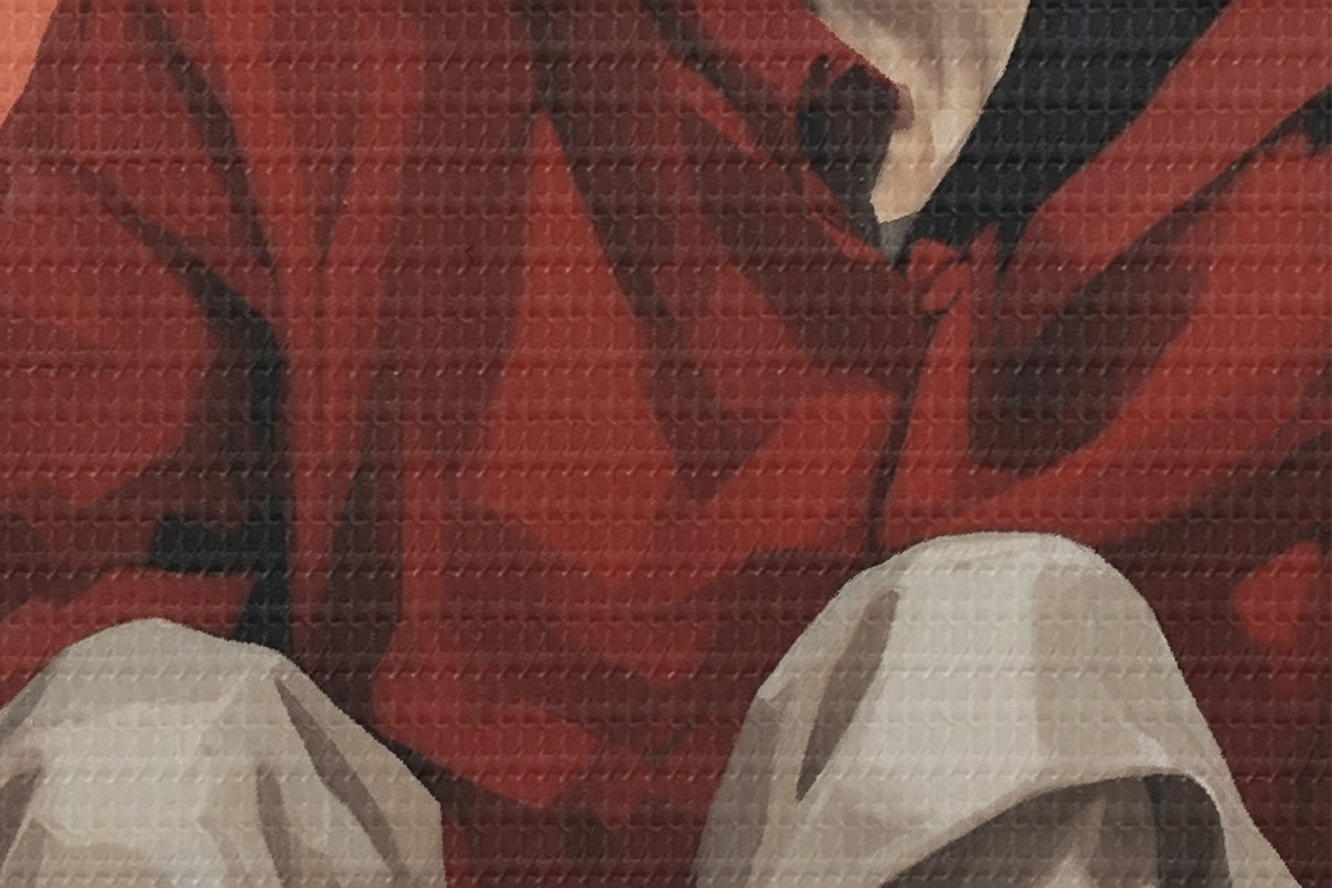Selle lõuendi peenike niidipunus meenutab professionaalse kunstniku lõuendi pinda.
