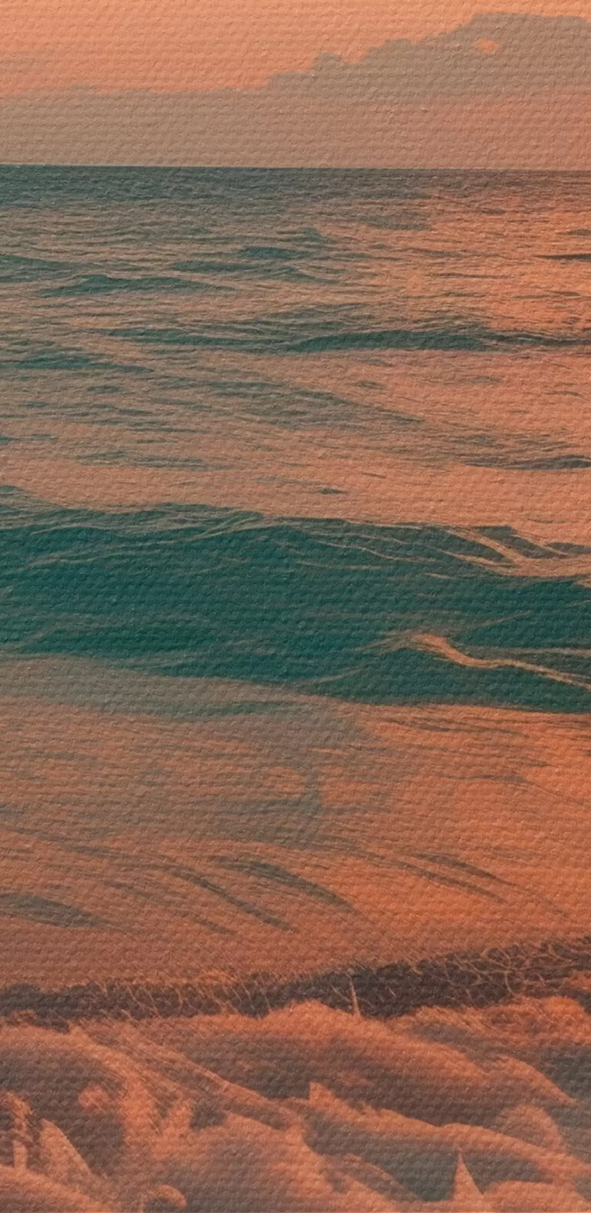 Selle lõuendi peenike niidipunus meenutab professionaalse kunstniku lõuendi pinda.
