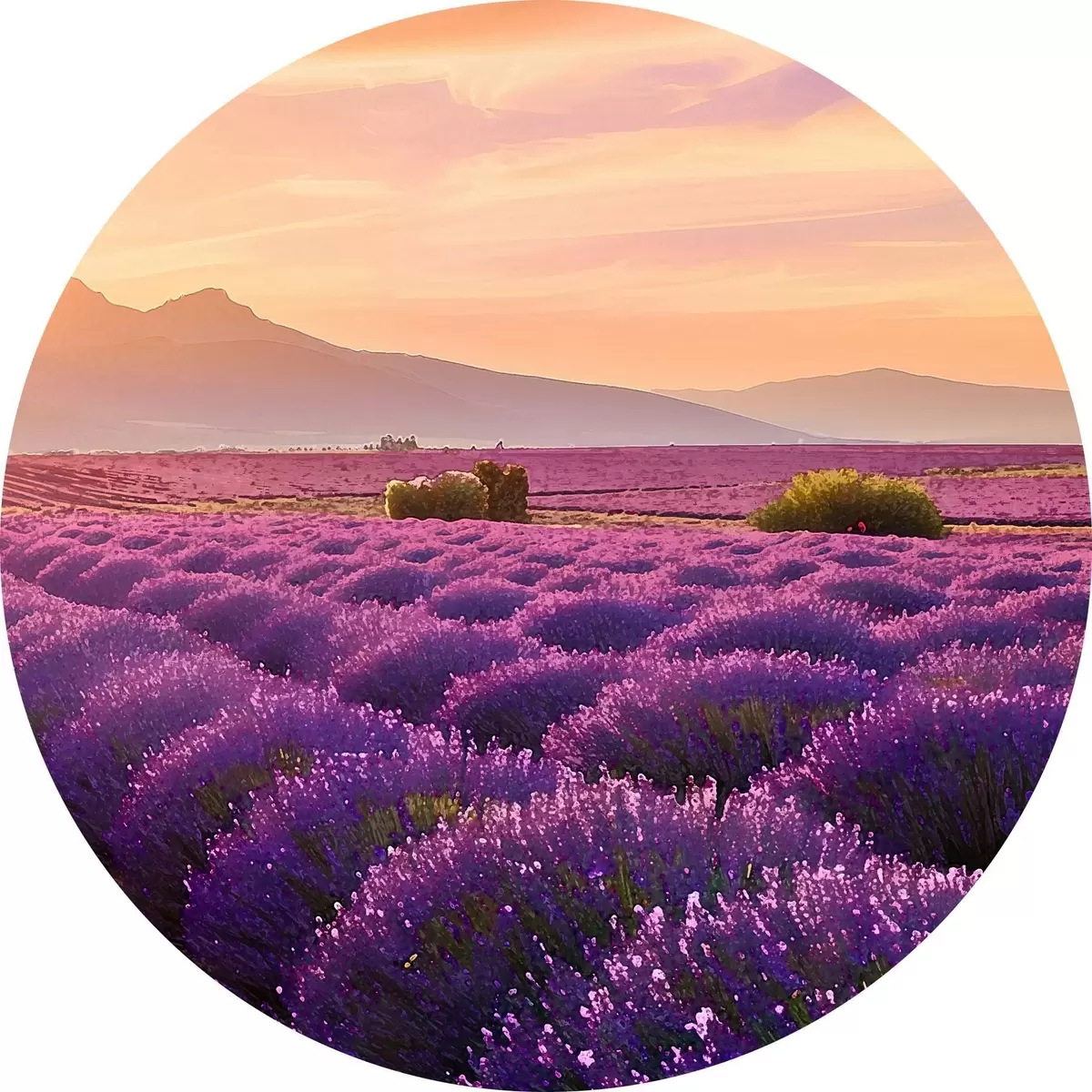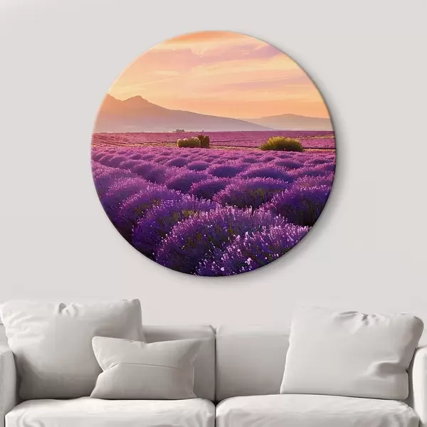 Ümmargused maalid Lavendel mägedes loojuva päikese taustal r45664