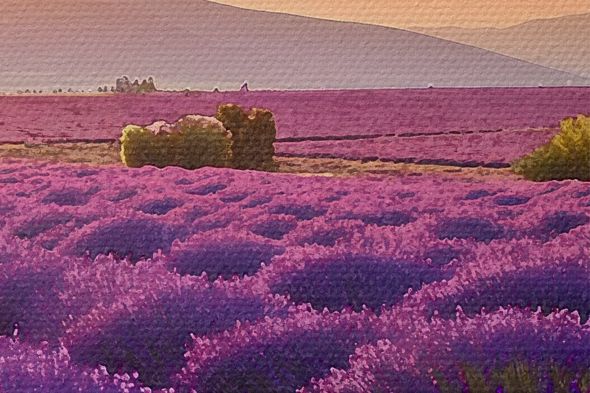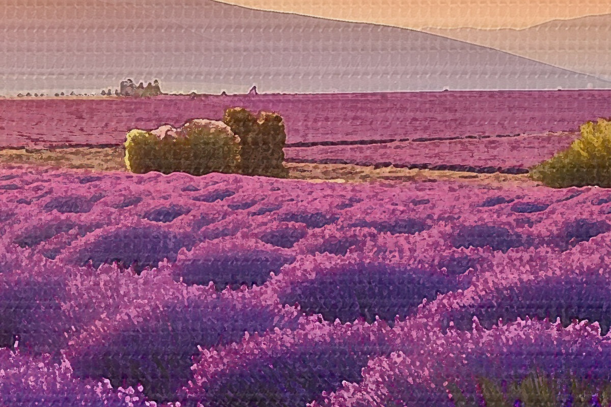 Pilt Lavendel mägedes loojuva päikese taustal Nr r45664