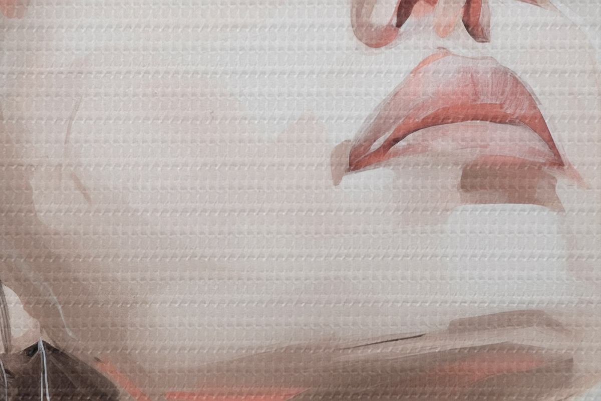 Selle lõuendi peenike niidipunus meenutab professionaalse kunstniku lõuendi pinda.