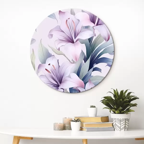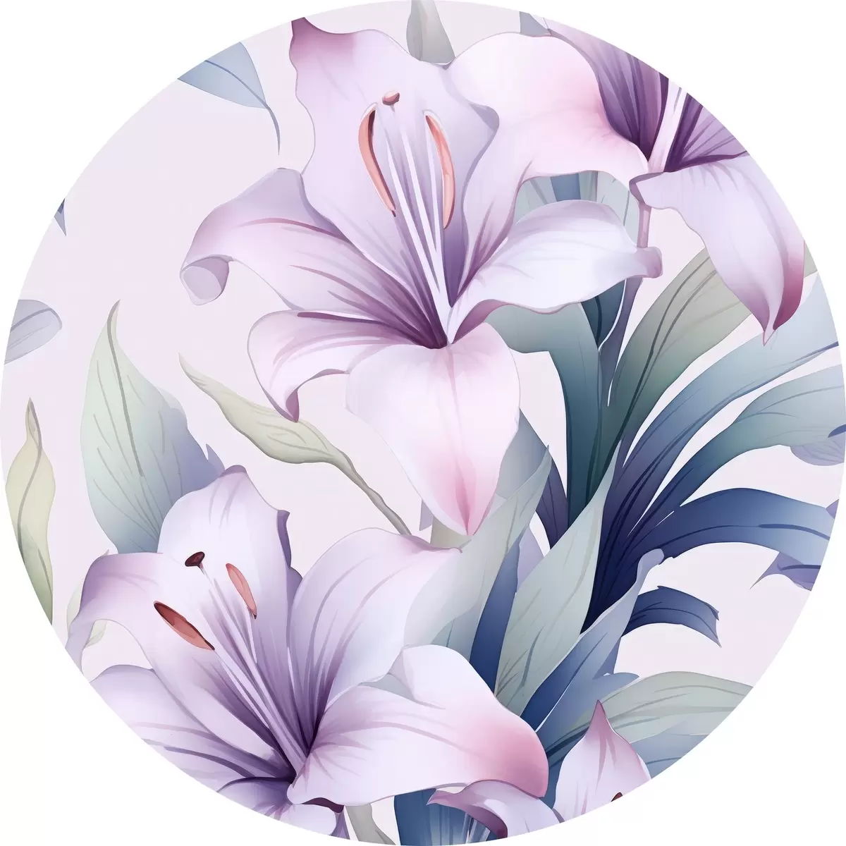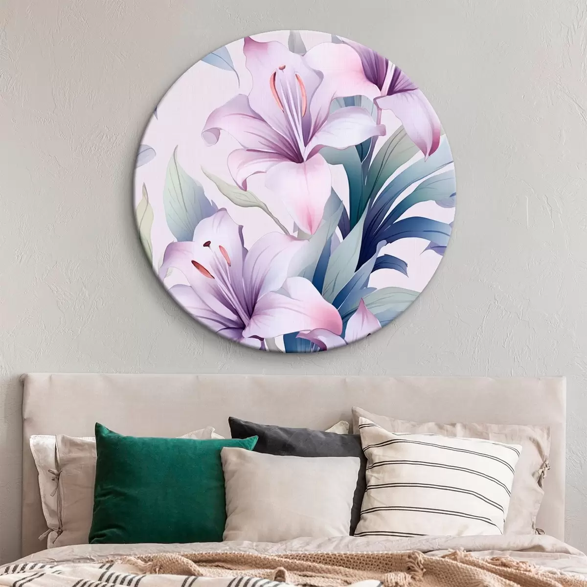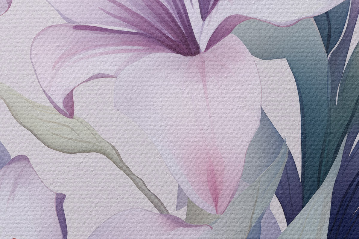 Pilt Suured roosa-lillad lillad roheliste lehtedega lillad Nr r45698