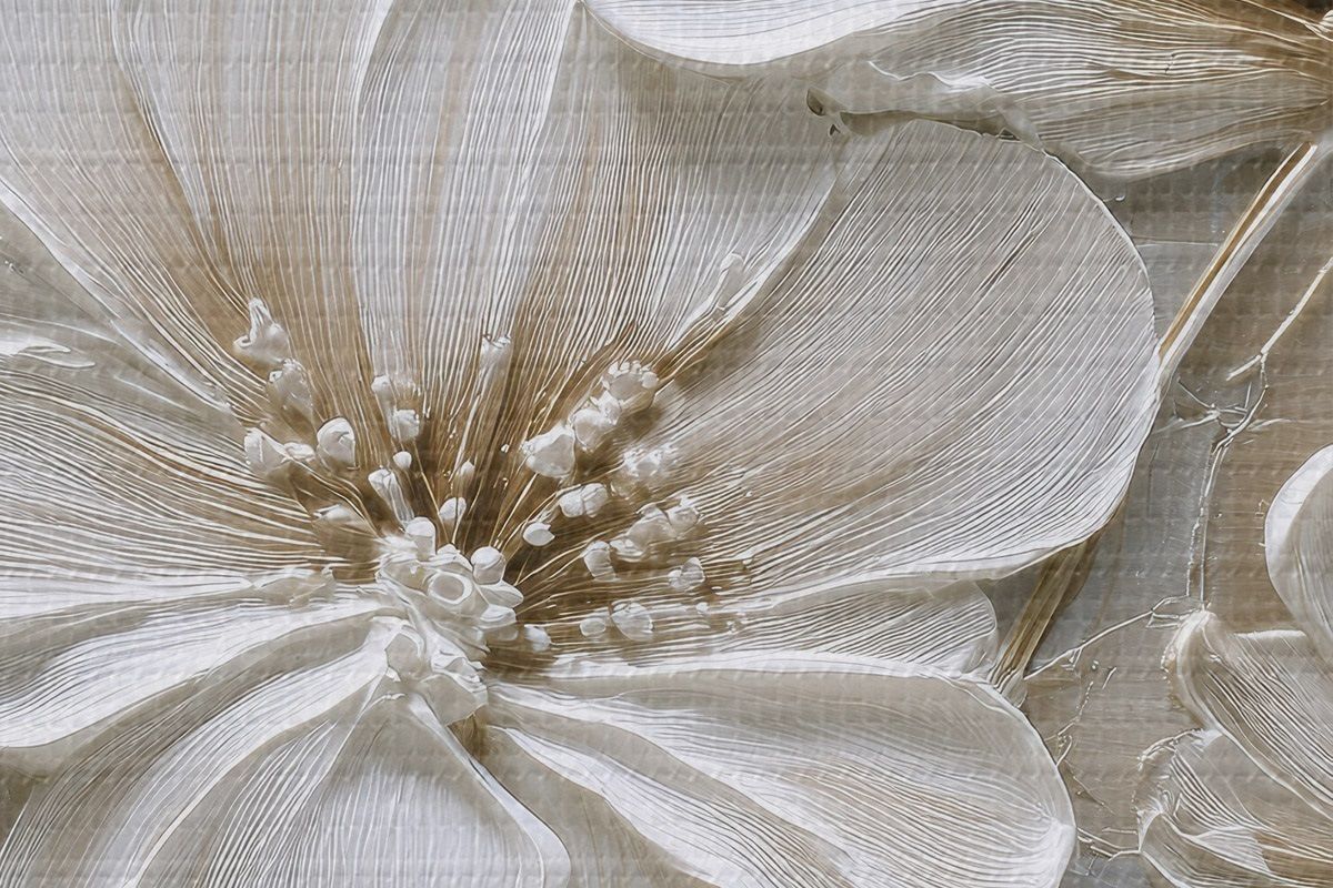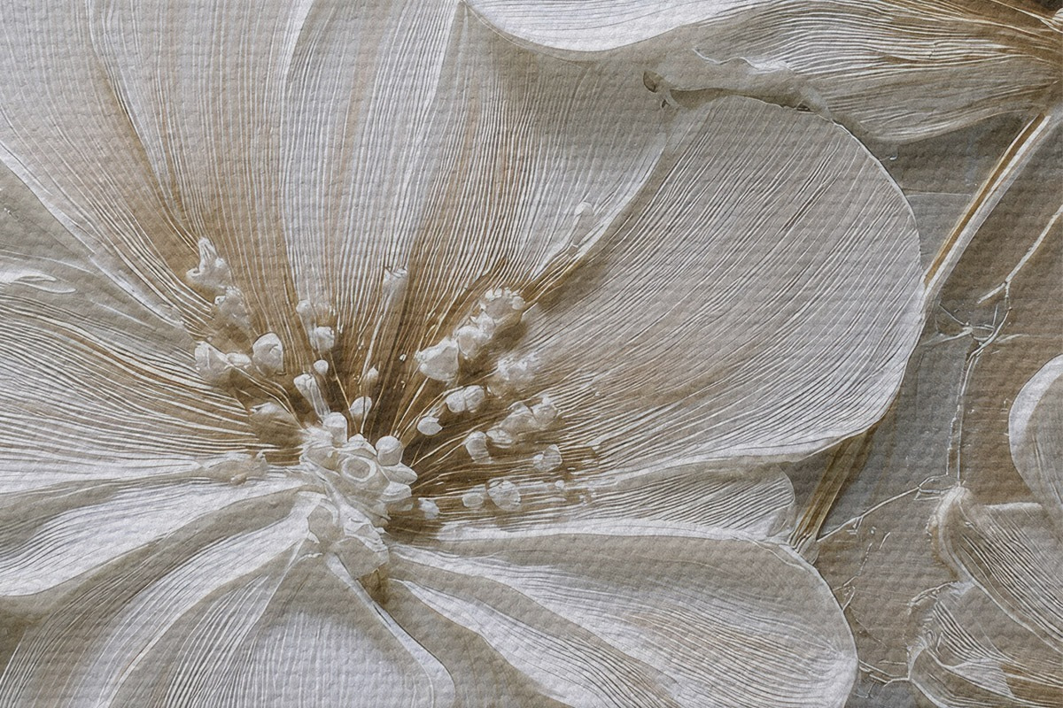 Pilt kreemikarva lilled imitatsiooniga impasto stiilis Nr r45712