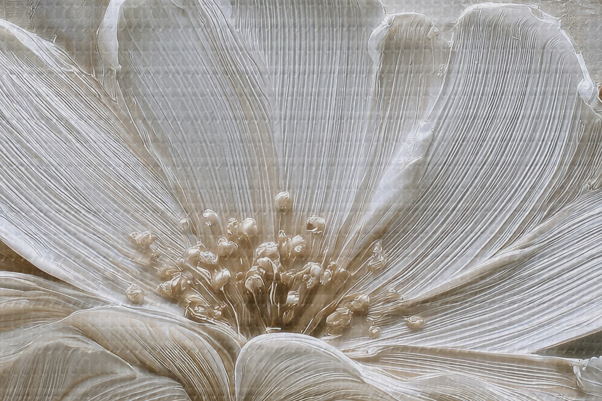 Pilt kreemikarva lilled imitatsiooniga impasto stiilis Nr r45713