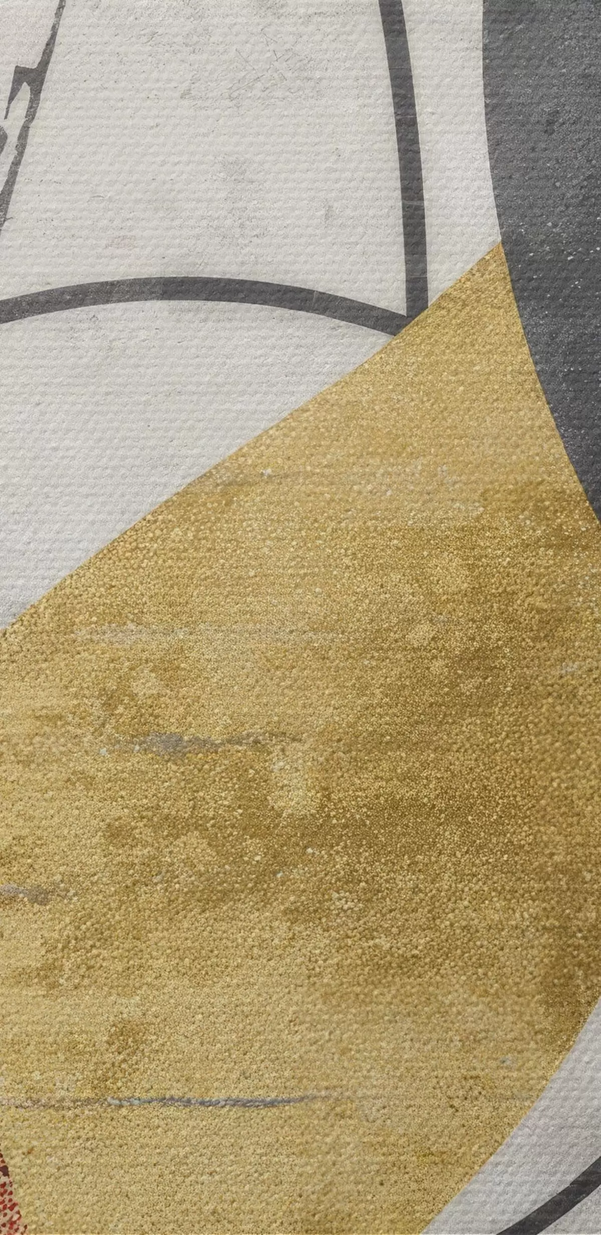 Selle lõuendi peenike niidipunus meenutab professionaalse kunstniku lõuendi pinda.