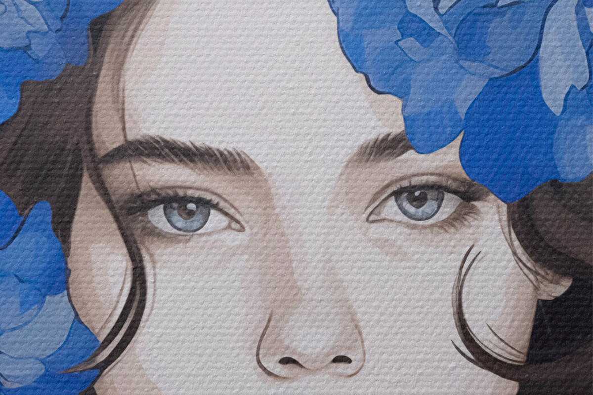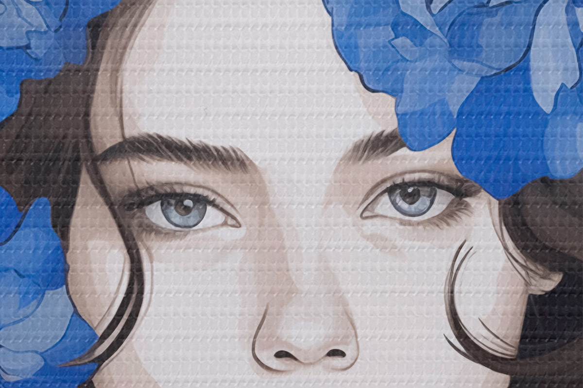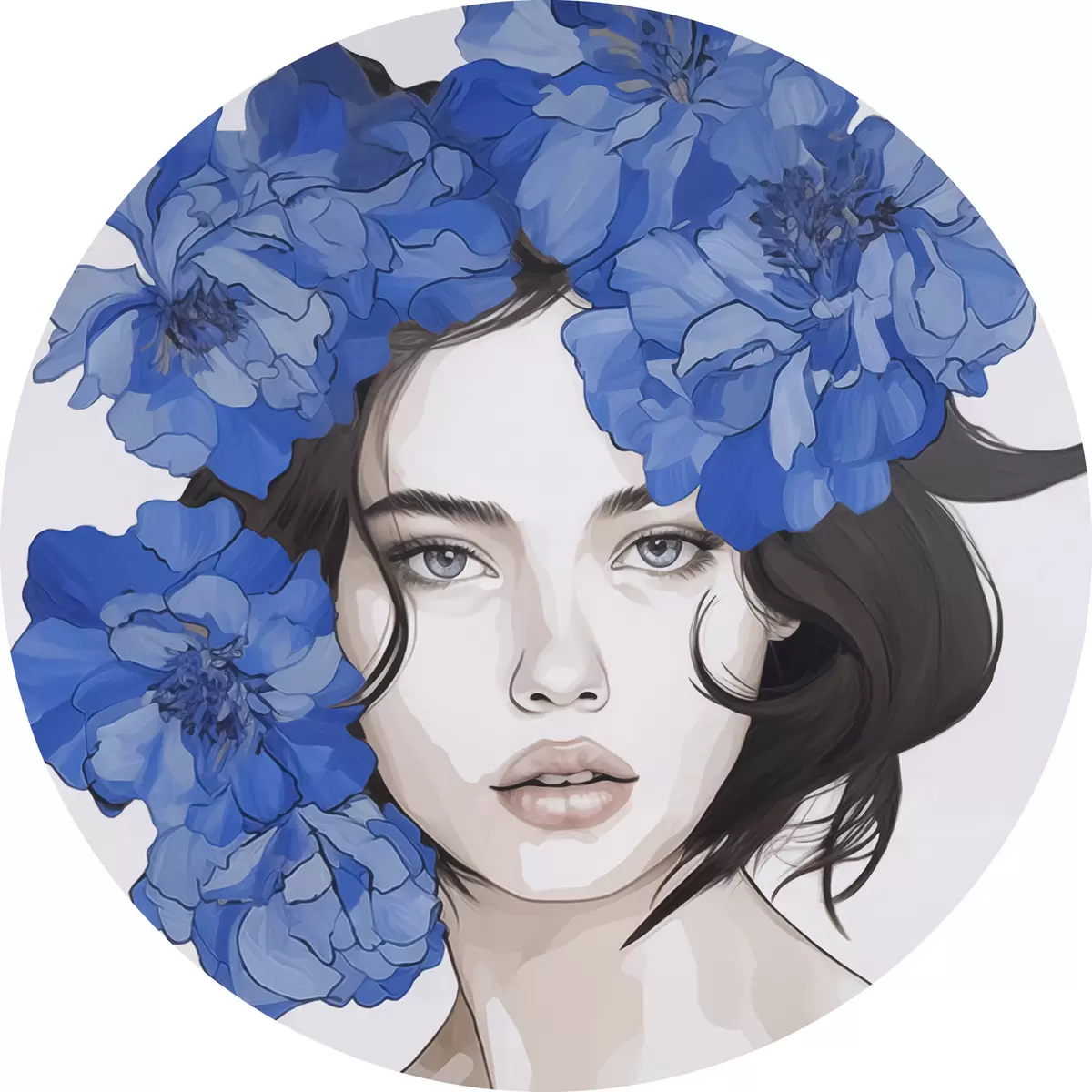 Pilt Tüdruku portree siniste lilledega Nr r45756