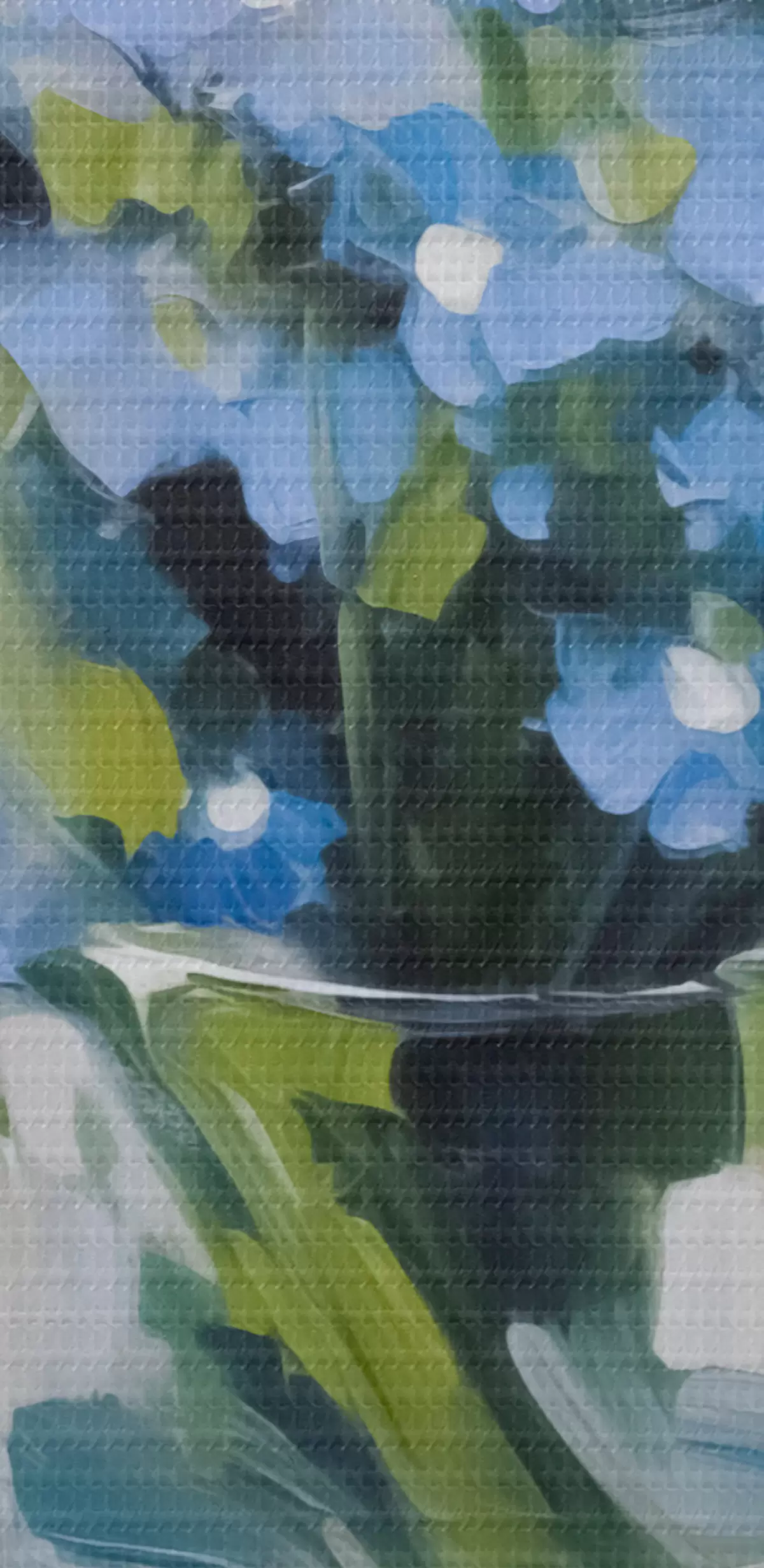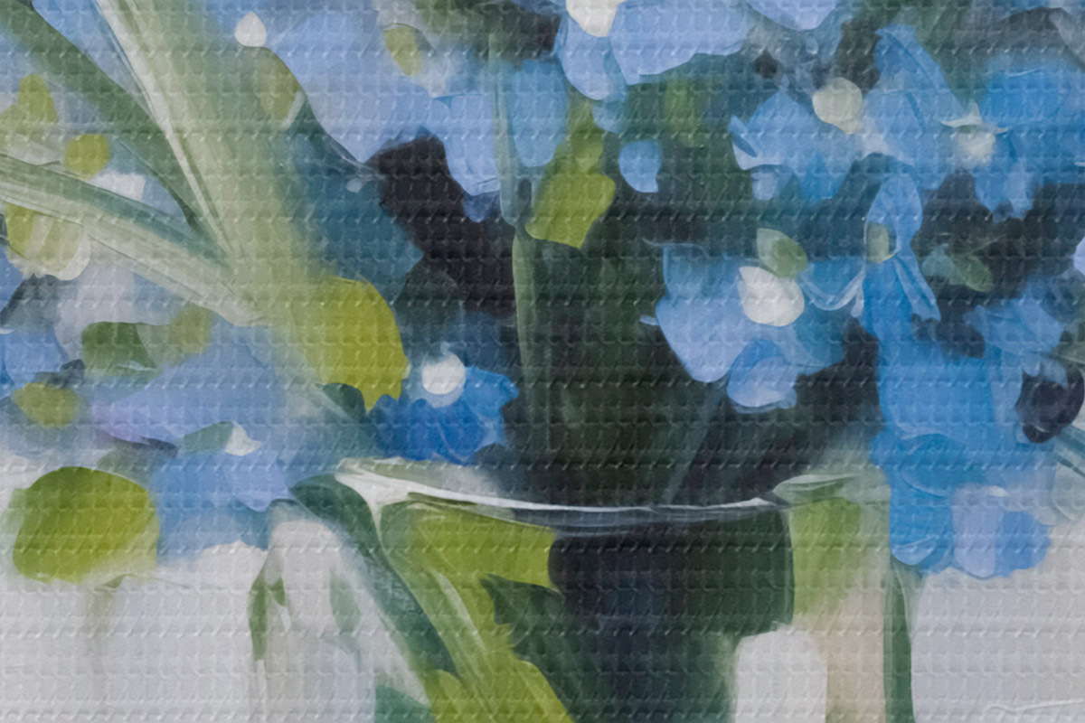 Selle lõuendi peenike niidipunus meenutab professionaalse kunstniku lõuendi pinda.
