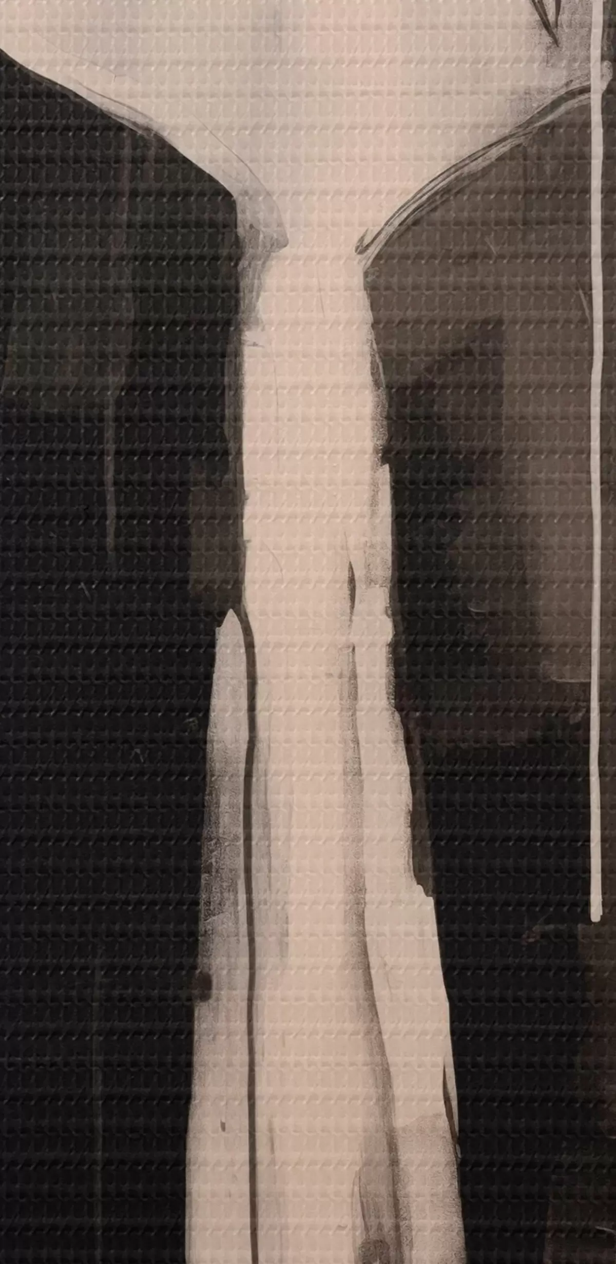 Selle lõuendi peenike niidipunus meenutab professionaalse kunstniku lõuendi pinda.