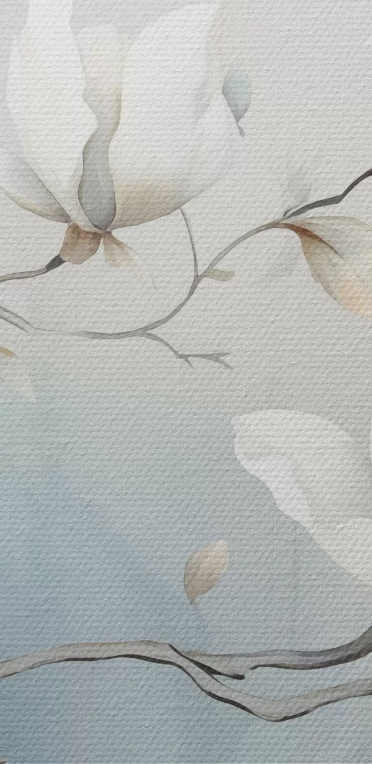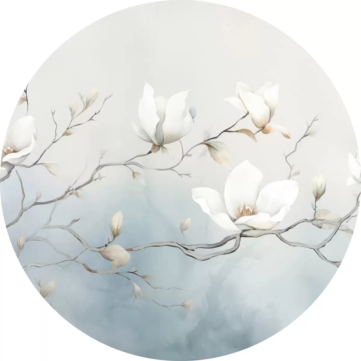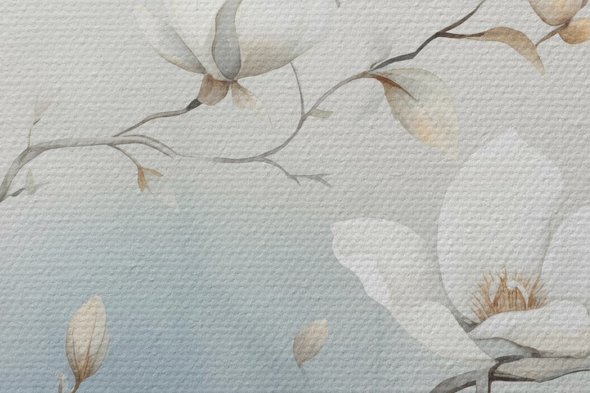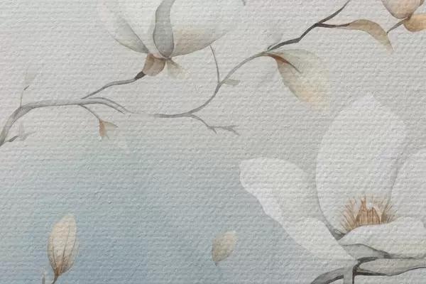 Pilt Magnolia oksad valget värvi õitega õrnal taustal Nr r45806