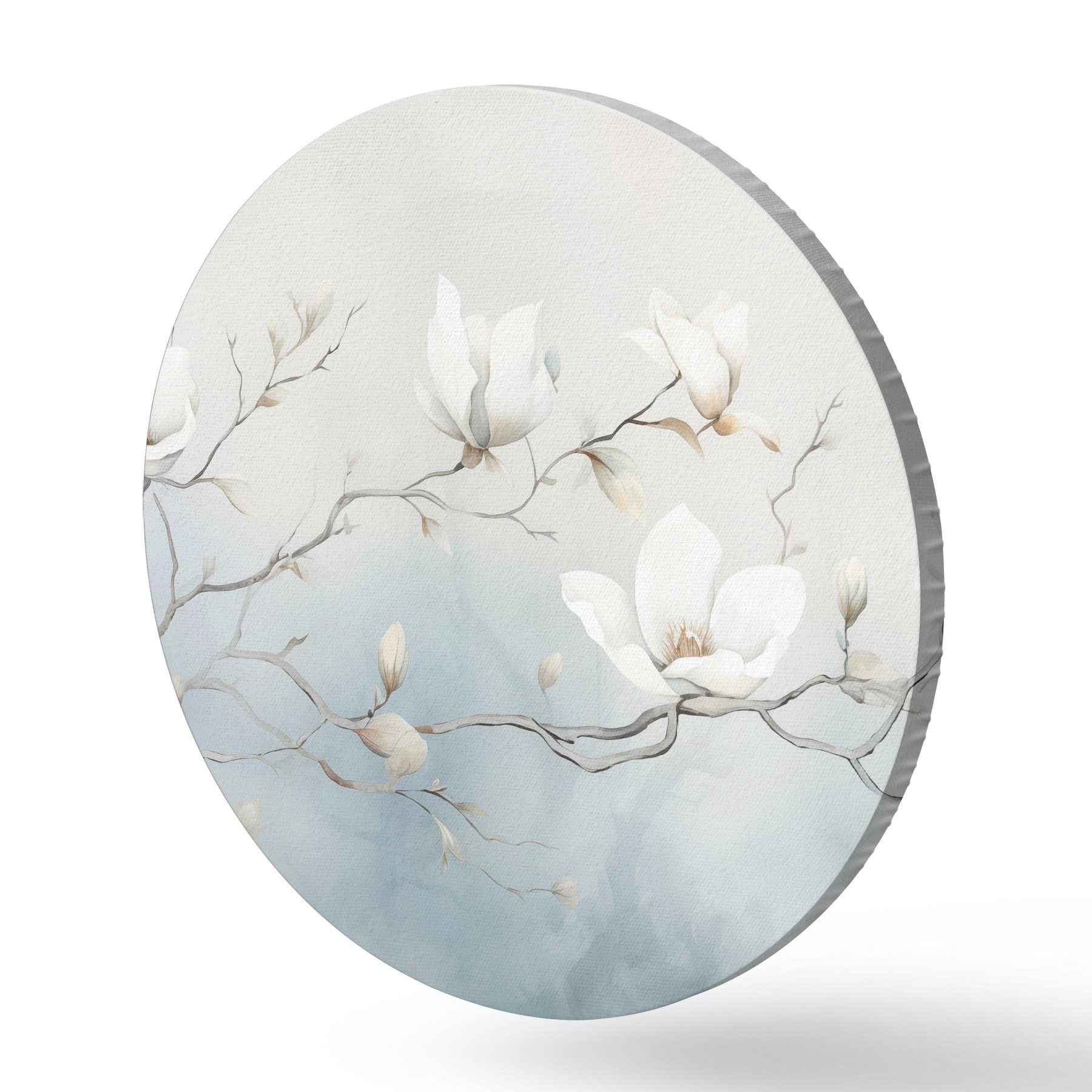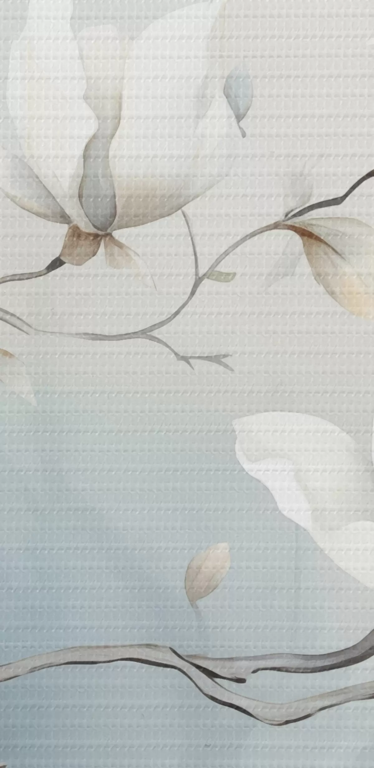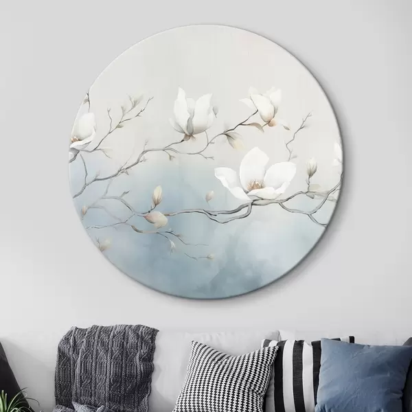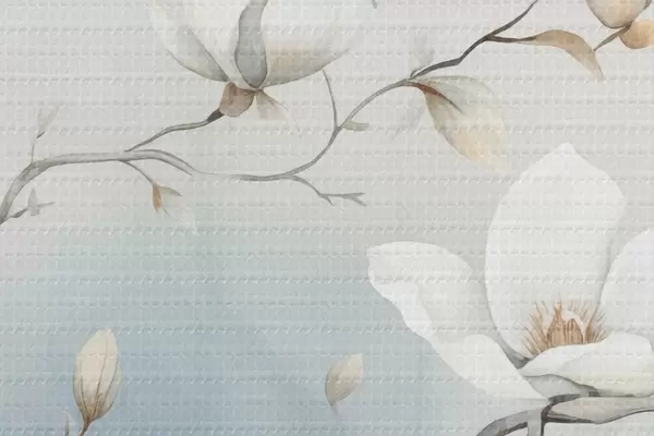 Pilt Magnolia oksad valget värvi õitega õrnal taustal Nr r45806
