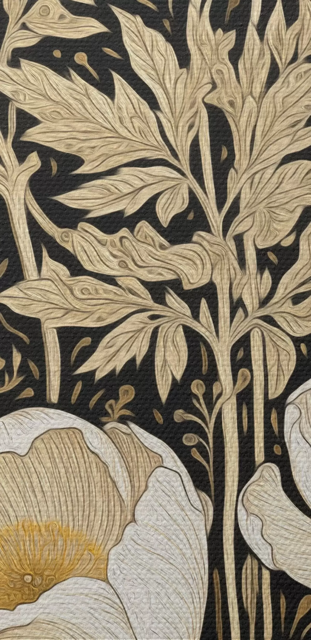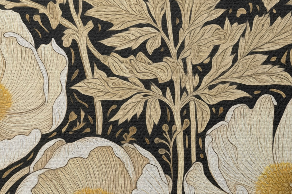 Pilt Kreemikarva lilled ja rohi mustal taustal Nr r45816