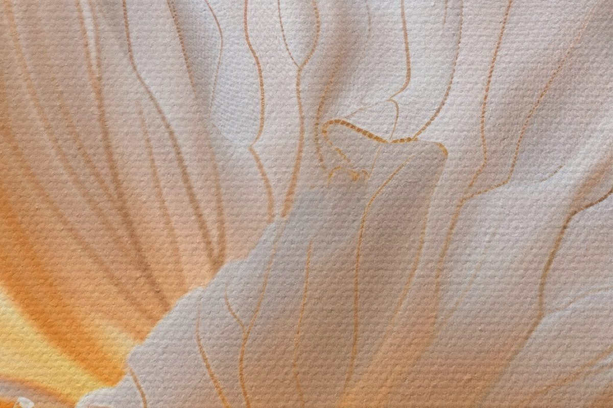 Selle lõuendi peenike niidipunus meenutab professionaalse kunstniku lõuendi pinda.