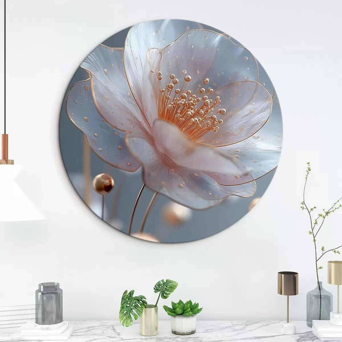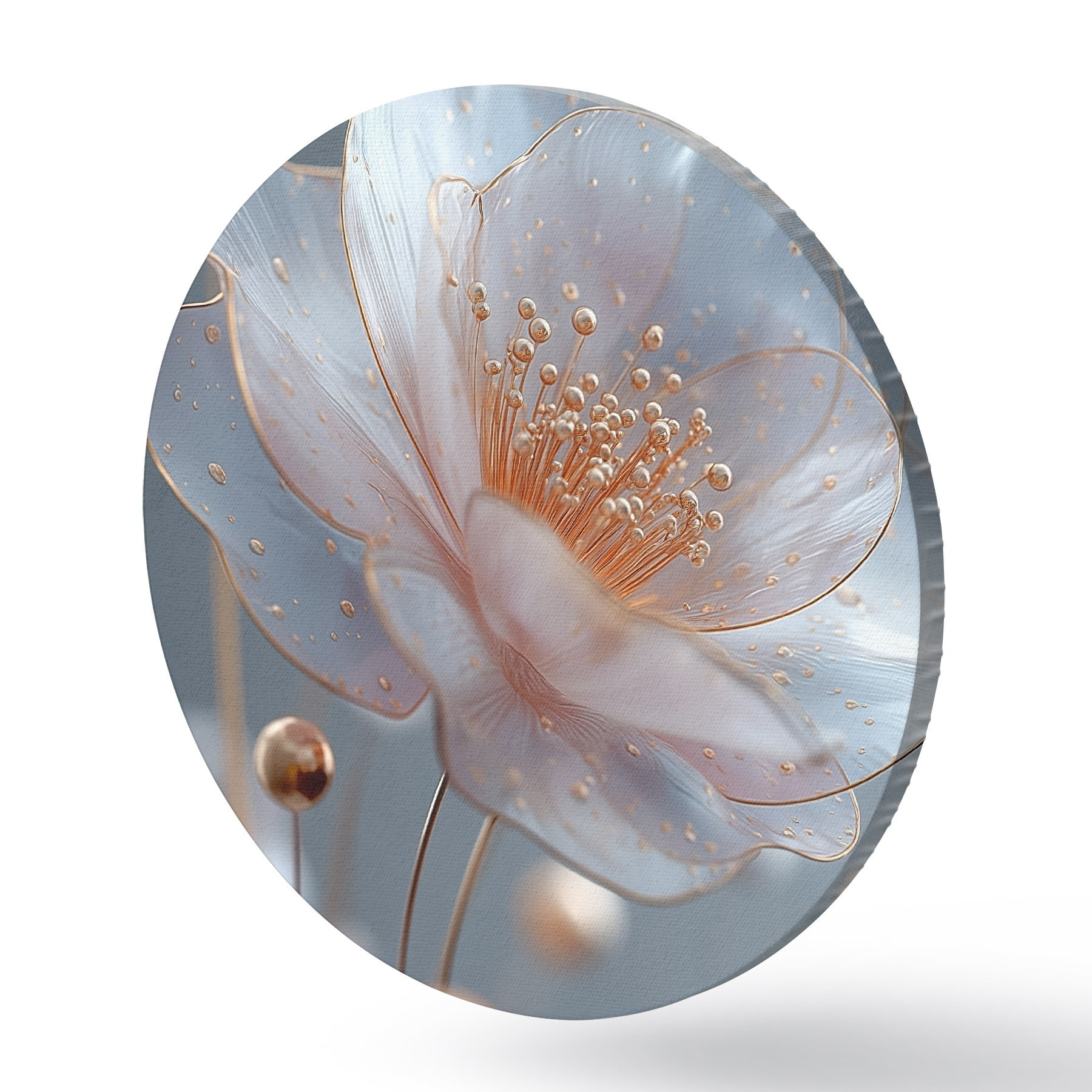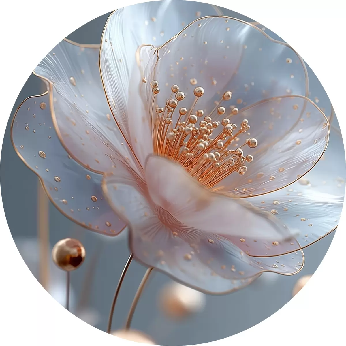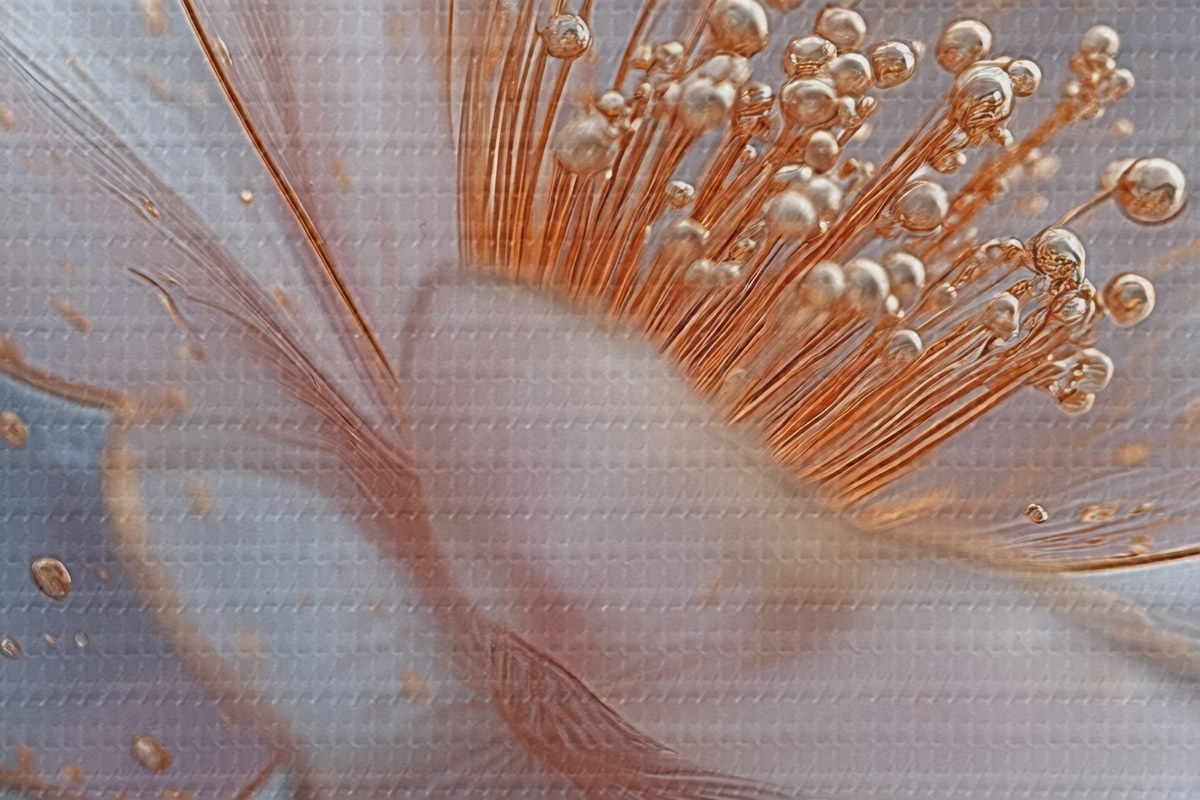 Pilt Läbipaistev lill sinisel taustal, millel on vasest tolmukad Nr r45880