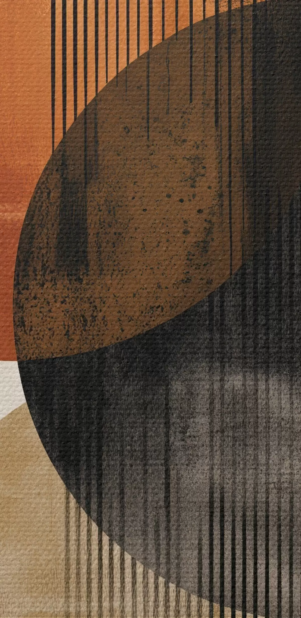 Pilt Kolm tekstuuriga ringi joontega terrakota-musta värvipalettiga Nr r45885