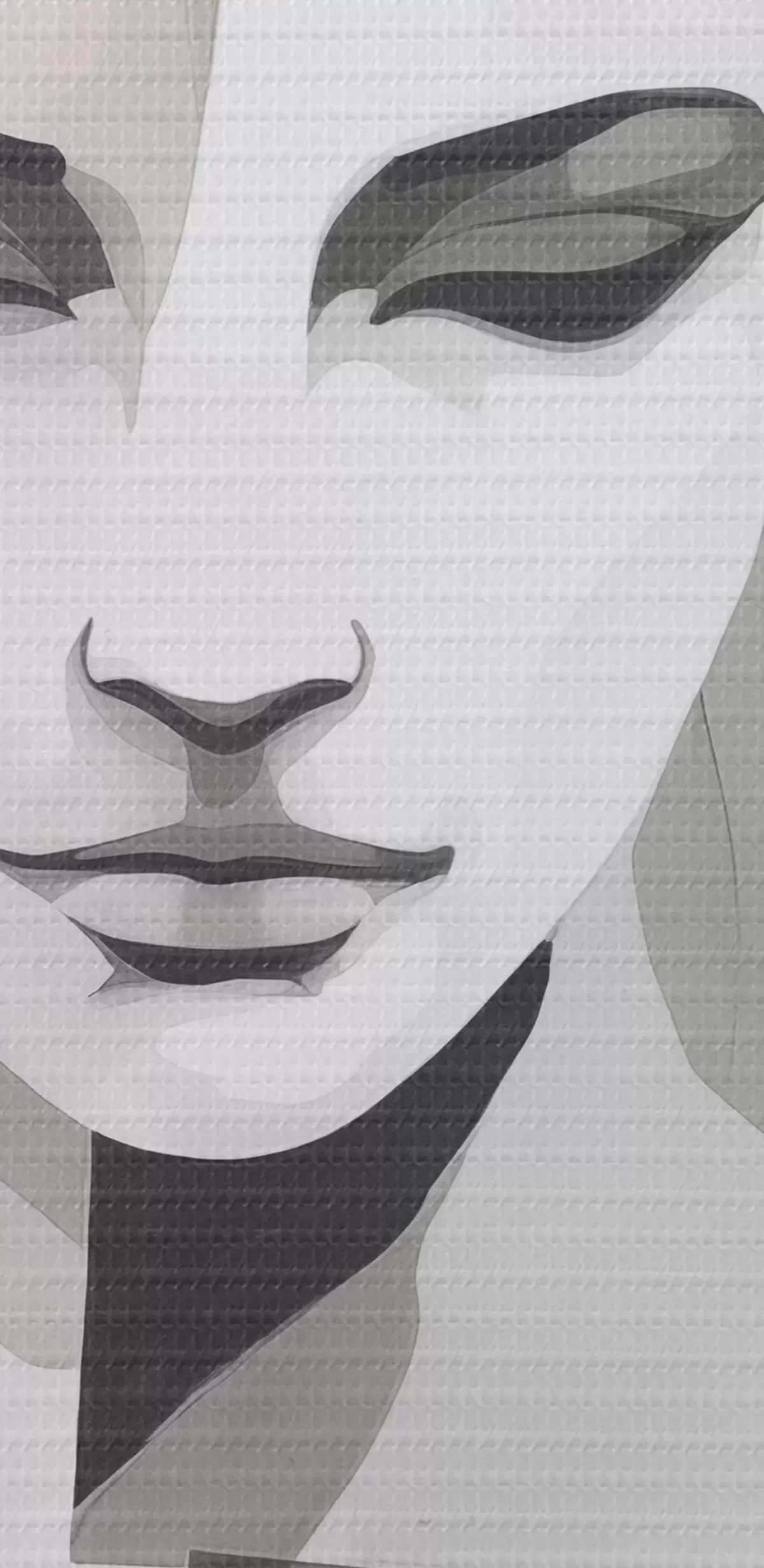 Selle lõuendi peenike niidipunus meenutab professionaalse kunstniku lõuendi pinda.