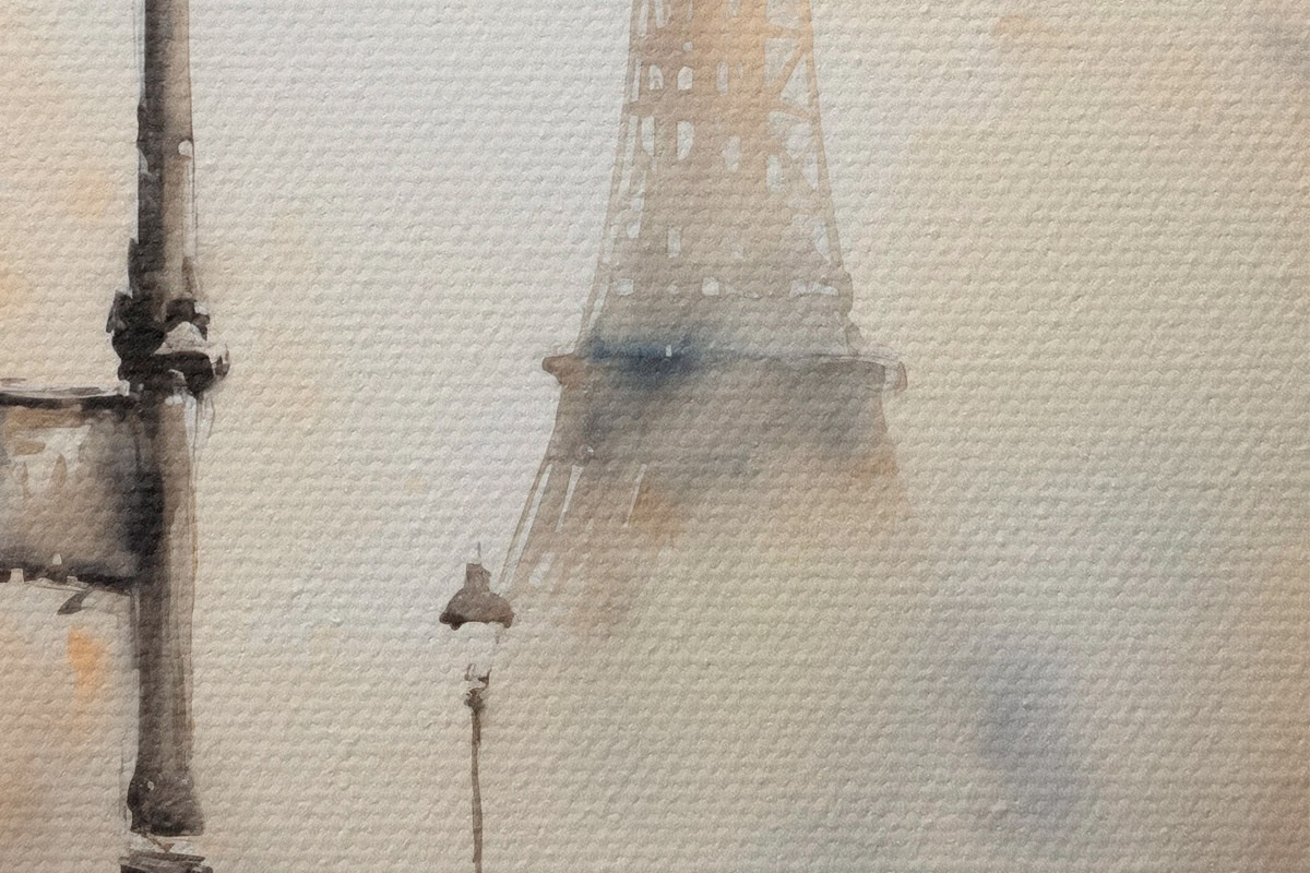 Pilt Vihmane sügispäev Pariisis, taustal Eiffeli torn ja vanaaegsed tänavavalgustid Nr r45931