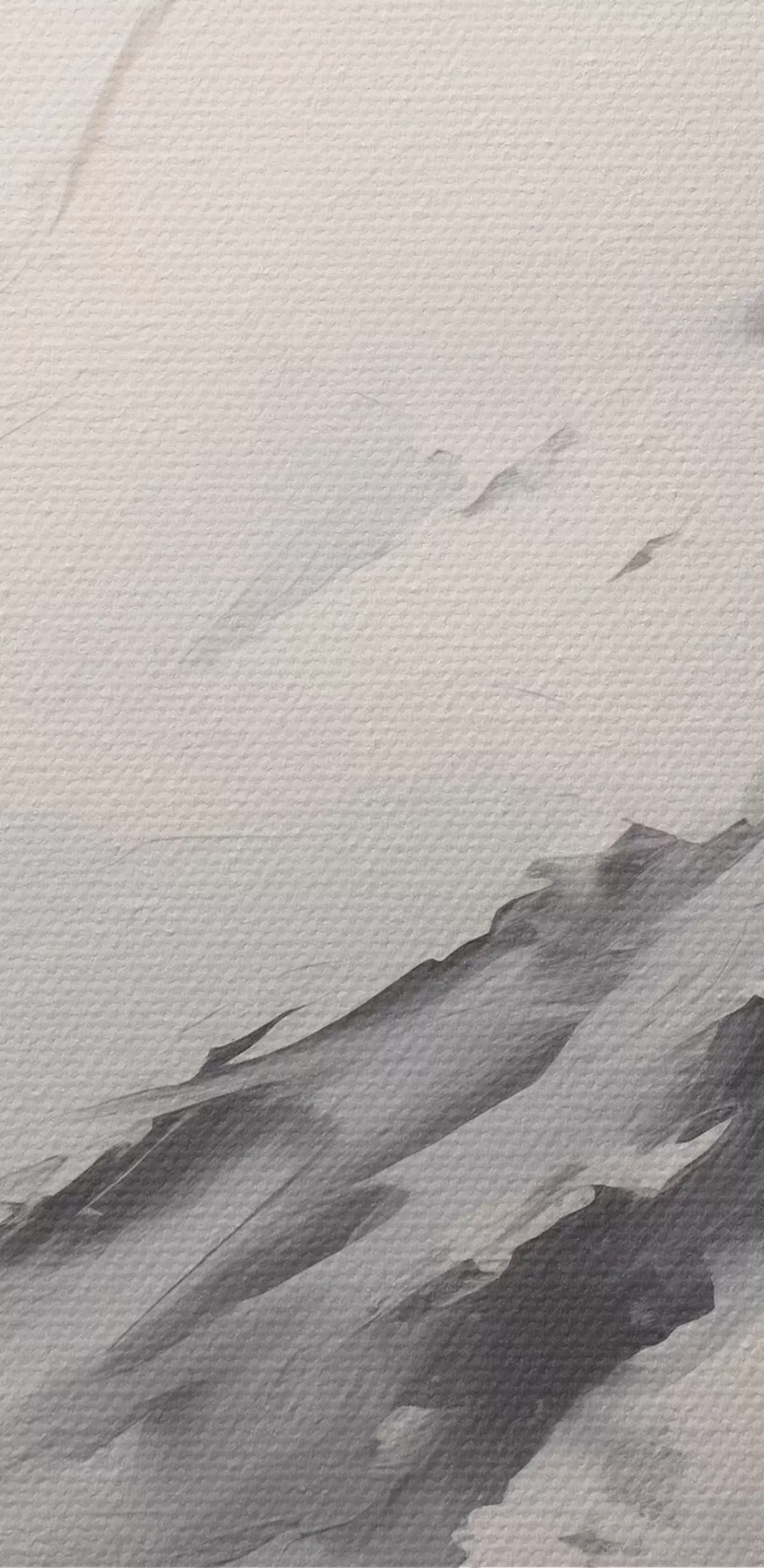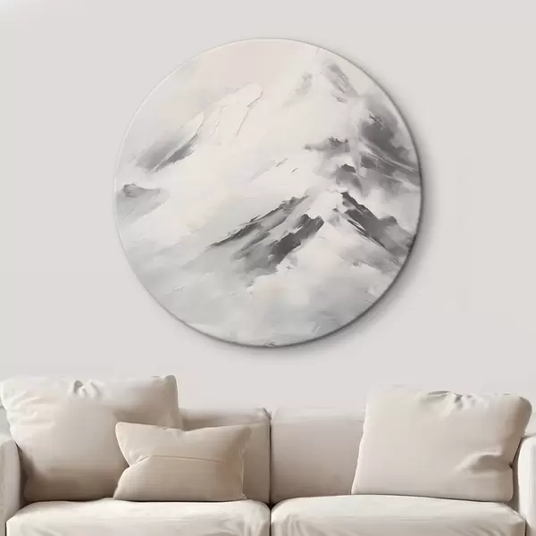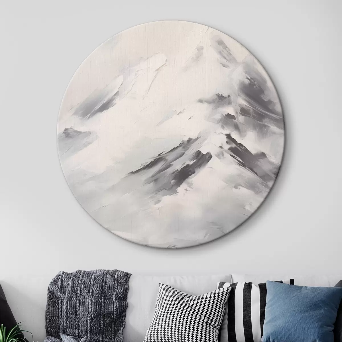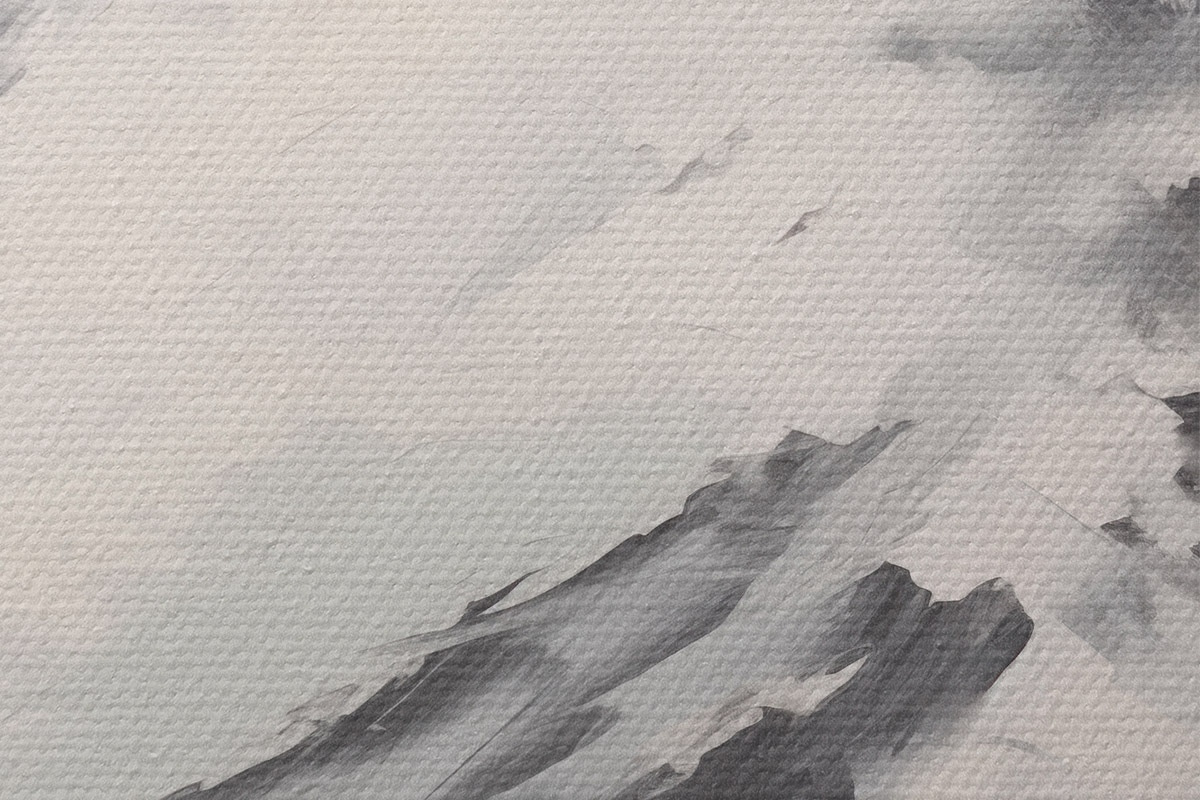 Pilt Lumised mäetipud hallide varjudega, hall taevas, pintslitõmbed, tekstuurne, minimalistlik Nr r45932