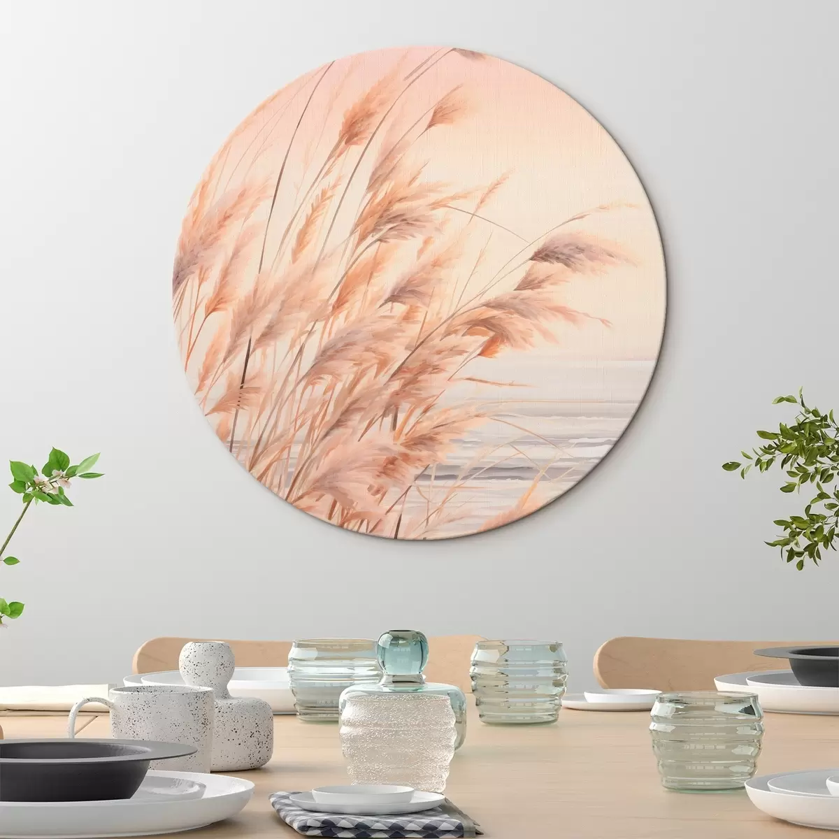 Pilt Pastelloranžide toonidega pampasrohi, heleroosa taevas, rahulik maastik Nr r45934